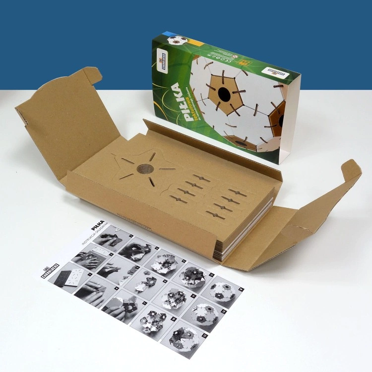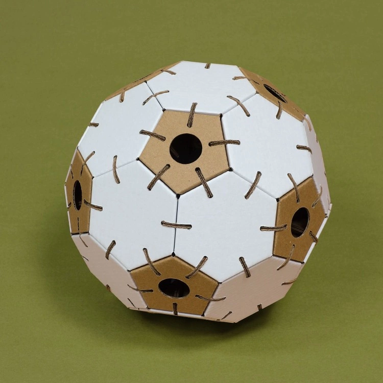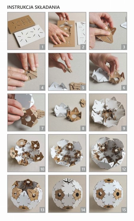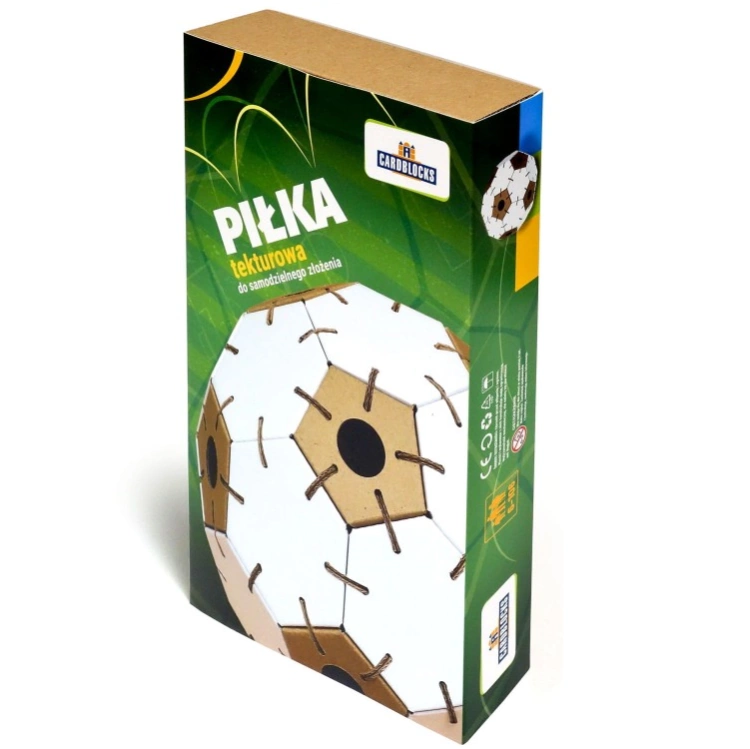 - Tekturowe klocki konstrukcyjne do samodzielnego złożenia w kształcie piłki.