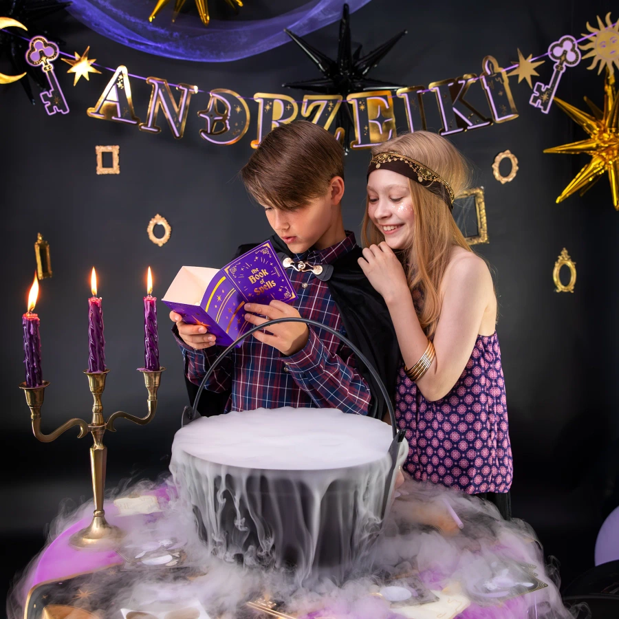 Zestaw 3 pojemników na przekąski w niezwykłym kształcie magicznej księgi „Book of Spells” to doskonały dodatek do dekoracji stołu podczas wieczoru wróżb. Utrzymane w kolorystyce fioletu, złota i beżu, z motywami gwiazd i tajemniczych symboli, idealnie oddają klimat magii i czarów.