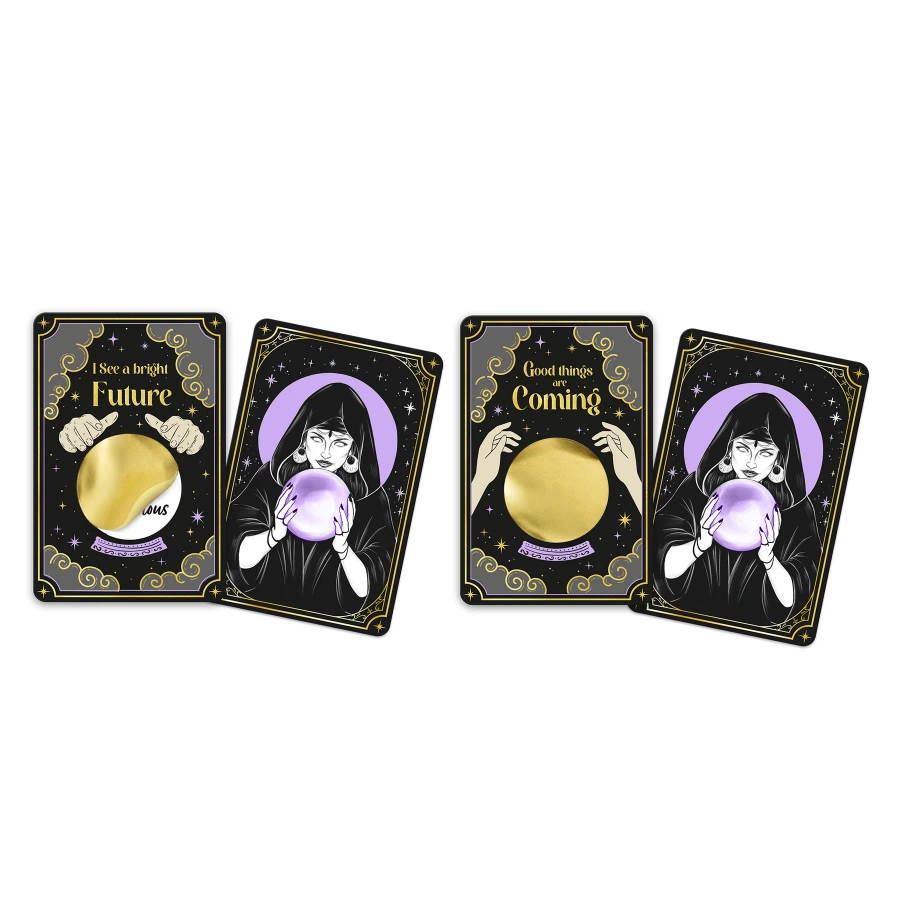 - Zestaw składający się z 30 kart, na których możesz napisać własne wróżby/ życzenia a następnie zakryć je naklejką do zdrapania.