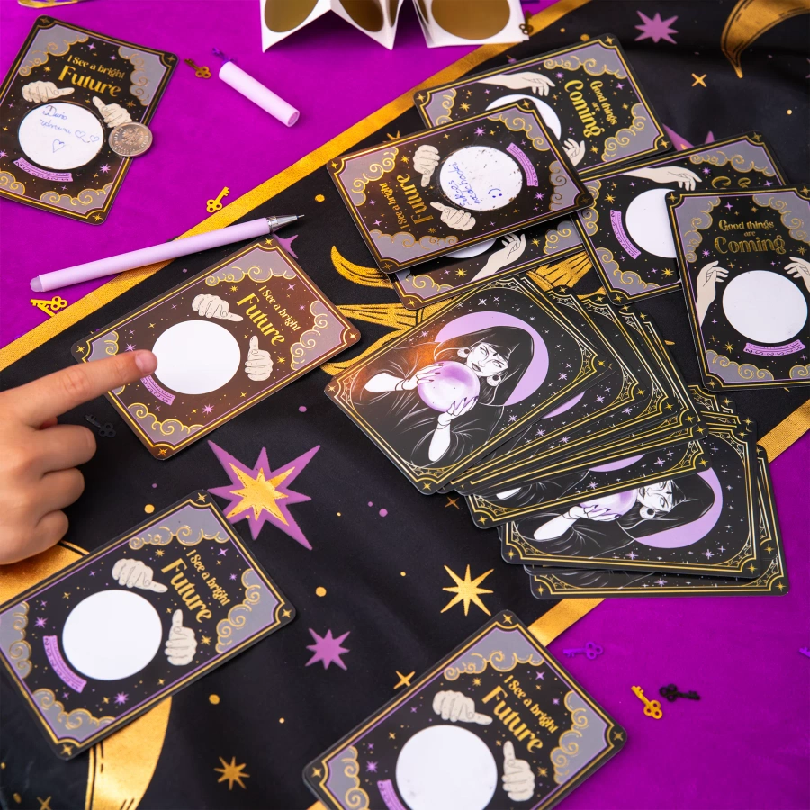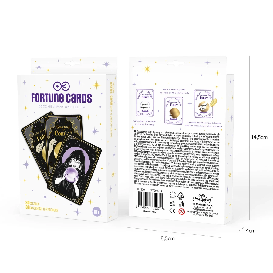 Zestaw 30 kart do wróżenia to idealny dodatek do zabawy podczas Andrzejek – pozwól odkryć sekrety przyszłości, które kryje każda karta. Produkt został zaprojektowany tak, aby umożliwić samodzielne zapisanie wróżby, a następnie przyklejenie na nią złotej zdrapki lub zakrycie jej do momentu odczytania.