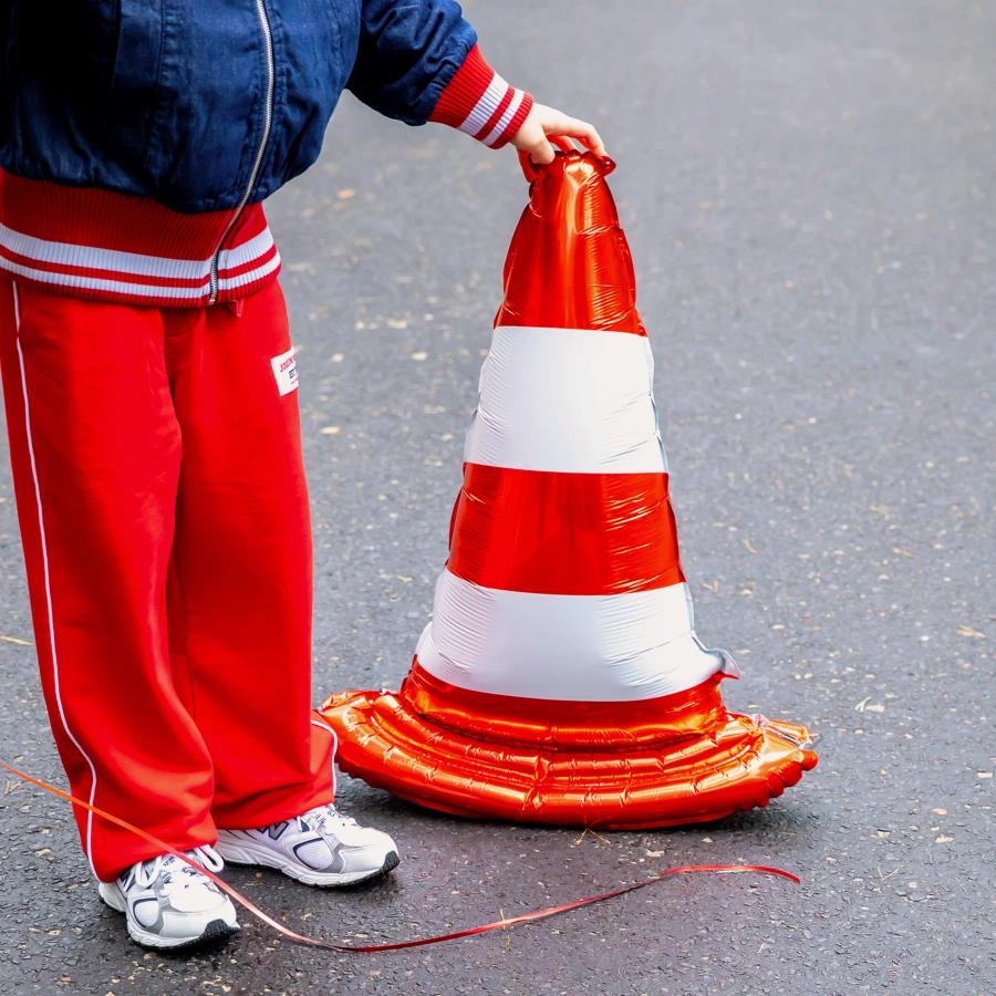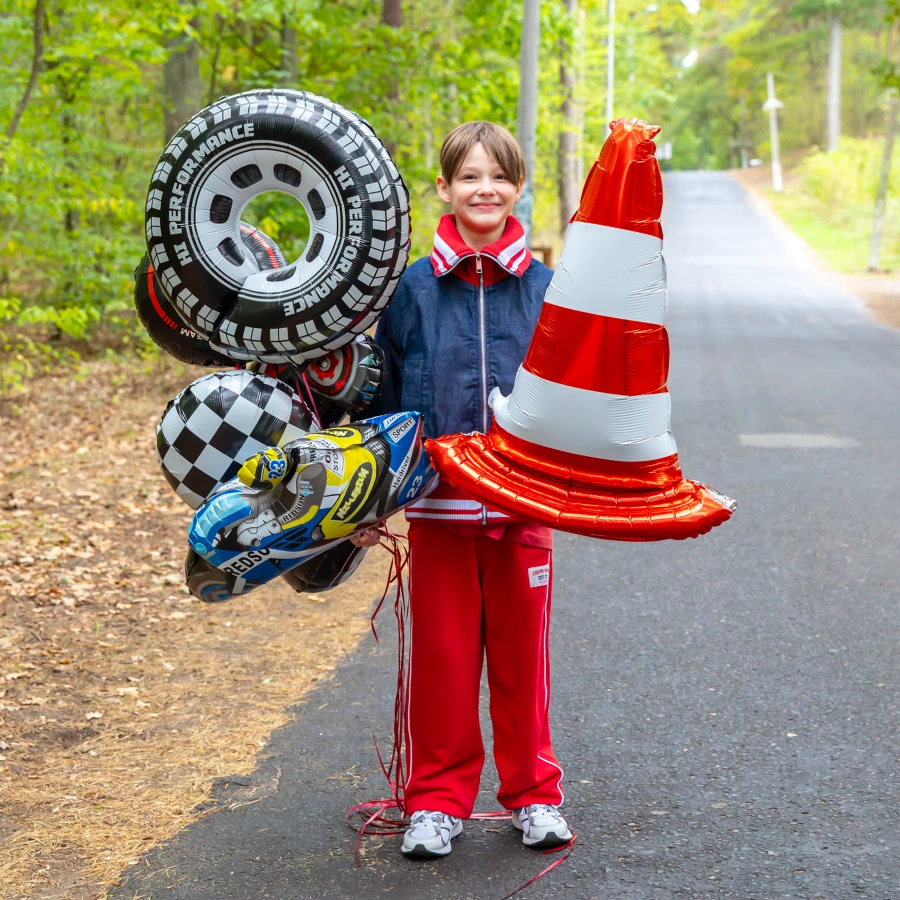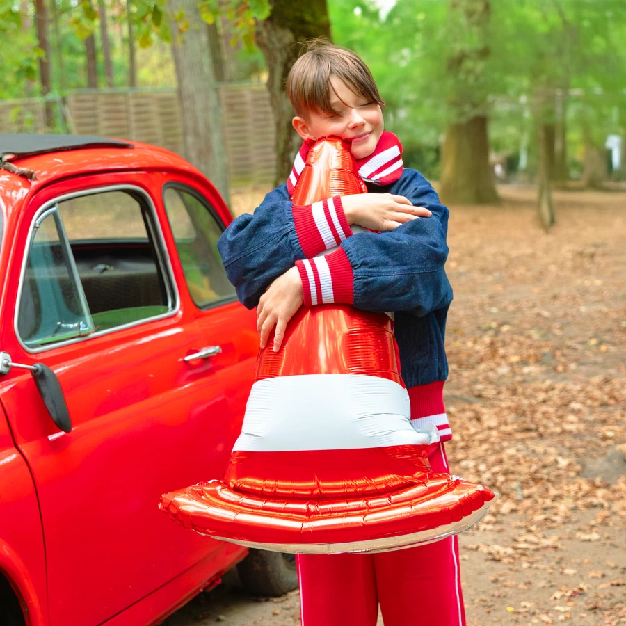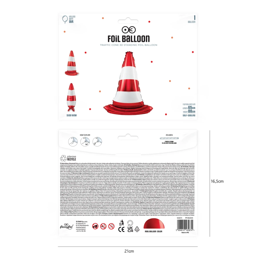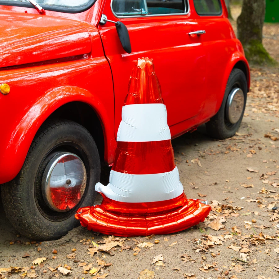 Balon foliowy w kształcie pachołka drogowego, to wyjątkowy stojący balon o wymiarach 65 x 88 cm idealna dekoracja na przyjęcia tematyczne Racing Car, urodziny małych fanów samochodów lub imprezy motoryzacyjne.