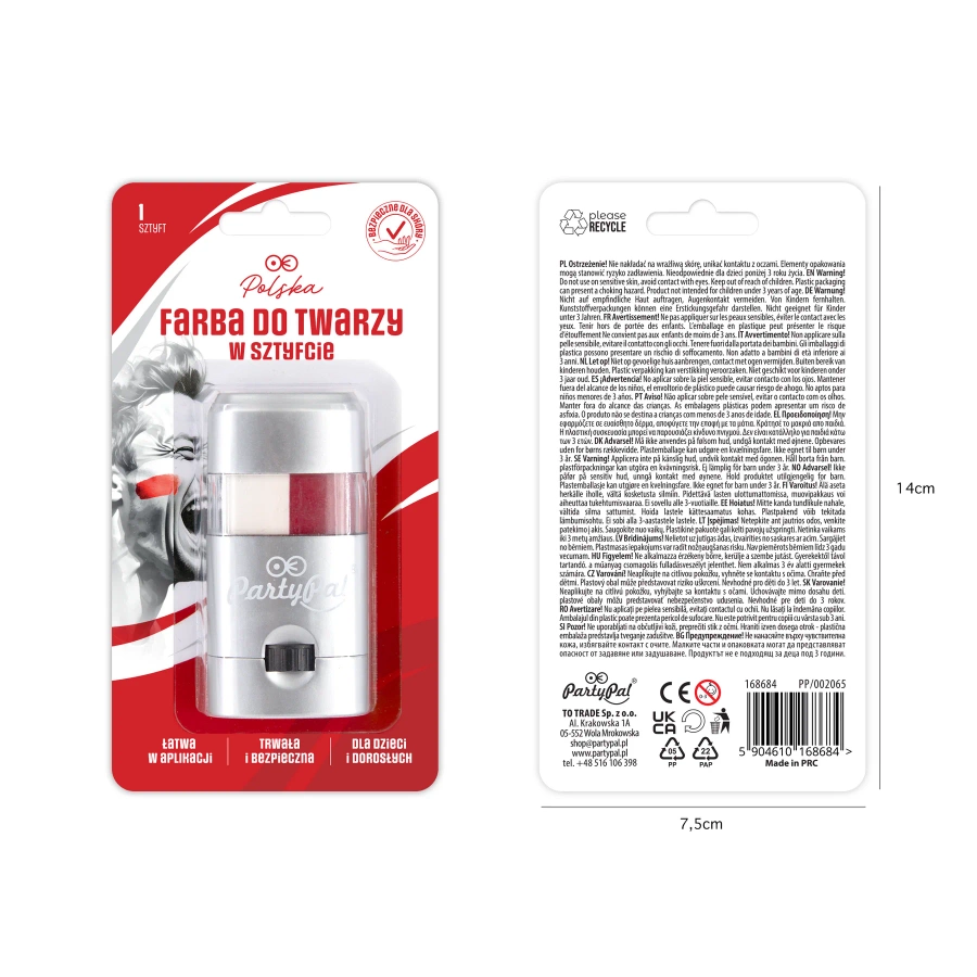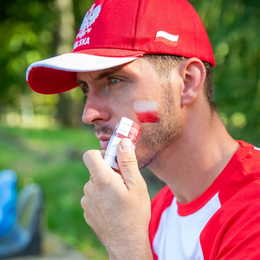 Dwukolorowy biało czerwony sztyft w łatwy i szybki sposób pozwoli na pomalowanie twarzy lub ciała w narodowe barwy Polski.