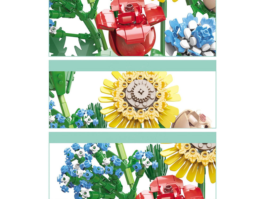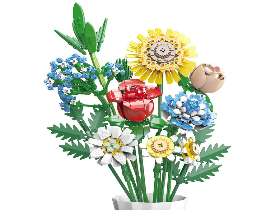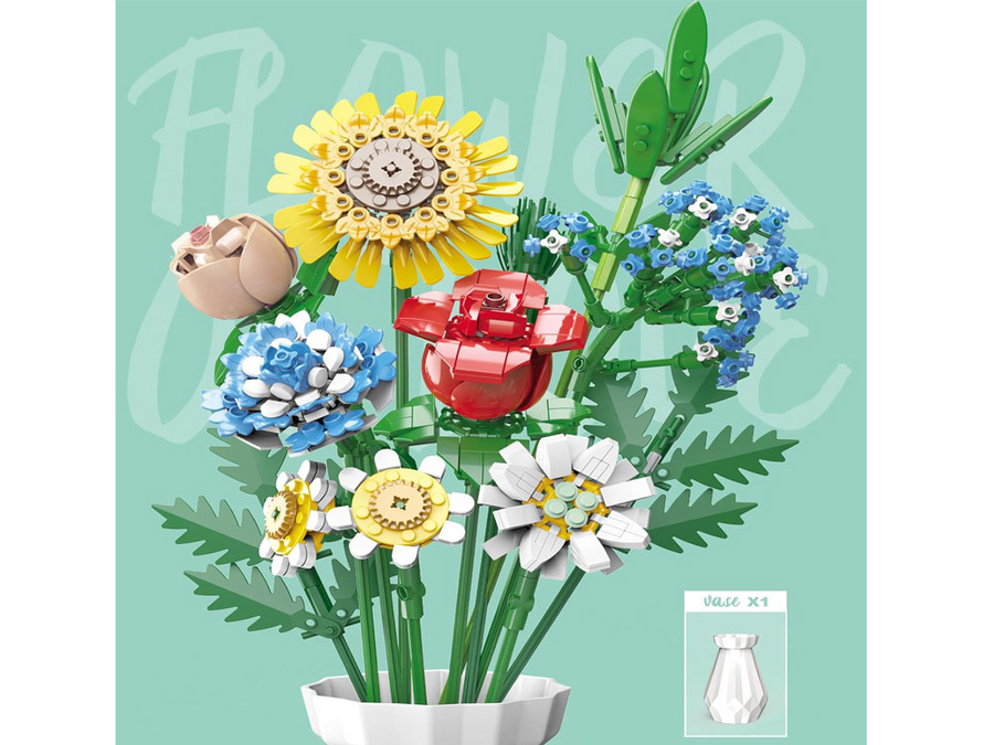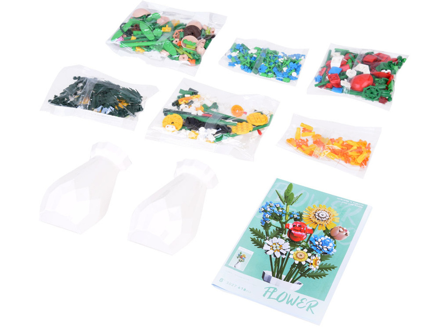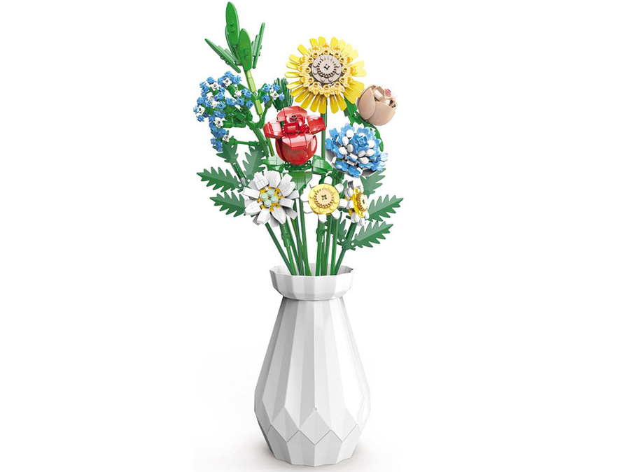 - Zestaw klocków w kształcie bukiety kwiatów polnych + wazon.