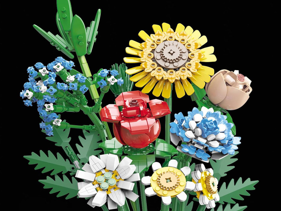 Klocki mają różne rozmiary oraz kształty, co bardzo wzbogaca estetykę bukietu. Dzięki niektórym elementom, po ułożeniu klocków, możemy dowolnie układać listki oraz płatki, ponieważ mają swój zakres "ruchu". Ta opcja pozwala nam dowolnie komponować bukiet, co uatrakcyjnia zabawę.