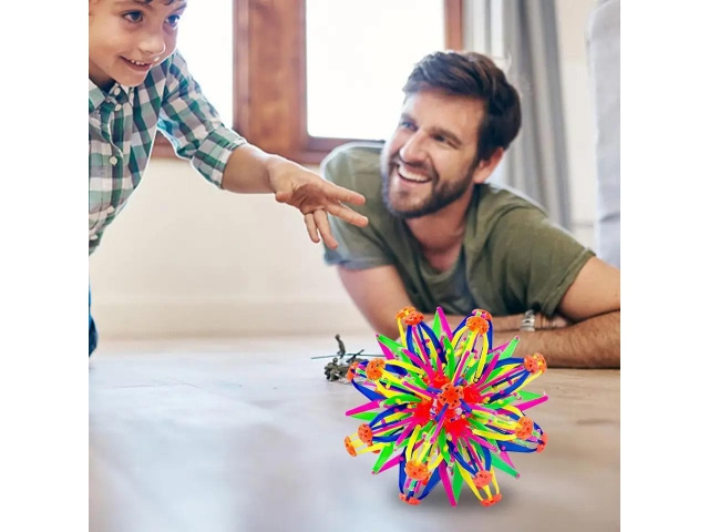 Kolorowa, magiczna piłka, która zachwyci dzieci i dorosłych! Ta niezwykła zabawka zmienia swoją wielkość w mgnieniu oka — złożona ma około 17 cm, a po rozciągnięciu osiąga aż 35 cm średnicy!