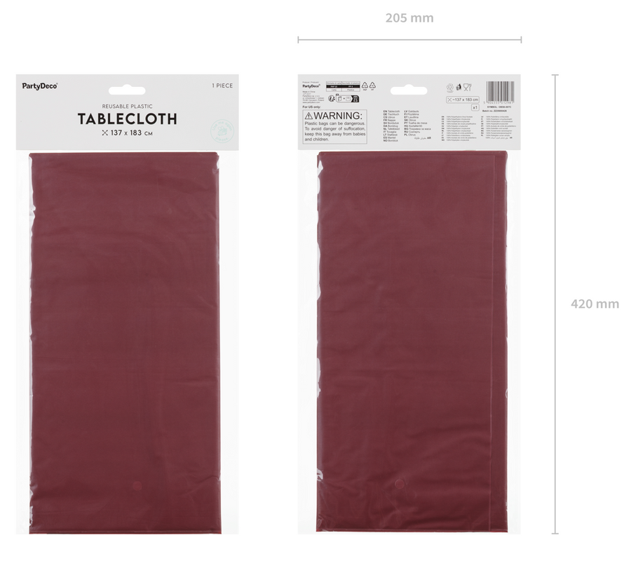 - Obrus foliowy w rozmiarze 137x183 cm - niezwykle praktyczny podczas organizacji przyjęć, imprez, urodzin.