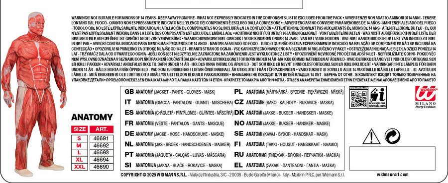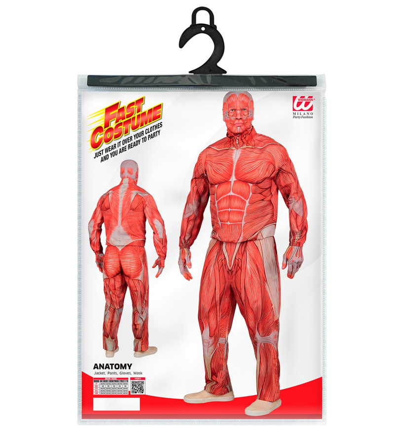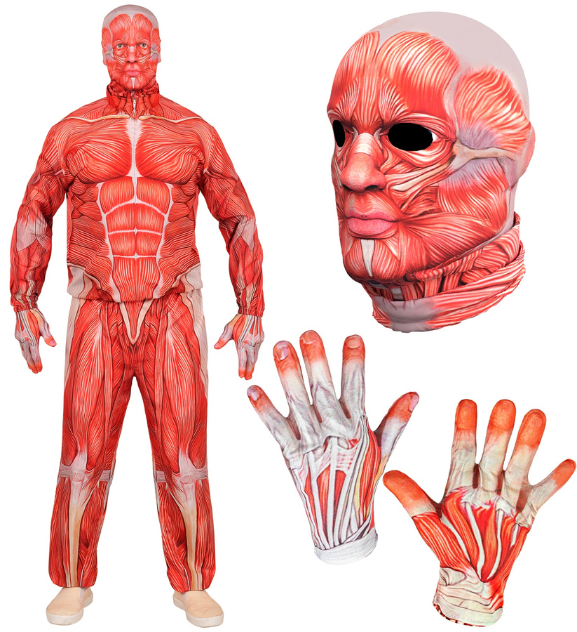 - Anatomiczny strój „Mięśnie” dla dorosłych – realistyczny kostium ukazujący budowę ludzkiego ciała bez skóry. Idealny na Halloween, imprezy tematyczne, przedstawienia teatralne lub wydarzenia medyczne. Gwarantuje efekt „wow” i niezapomniane wrażenie!