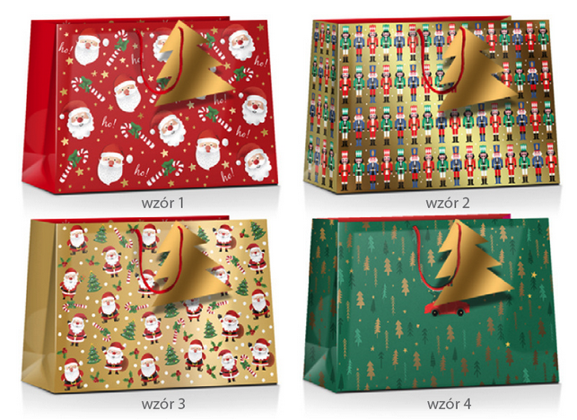 - Torebki z przepięknymi świątecznymi motywami. Torebki z jednej strony posiadają złocenia.