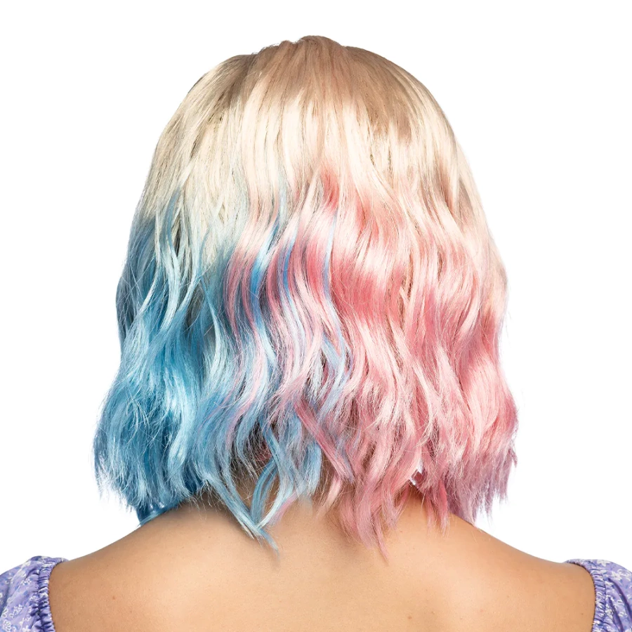 Zmień swój wygląd w kilka chwil dzięki tej wyjątkowej peruce inspirowanej postacią Jenny z serialu Wednesday! Jasny blond kolor z różowo-niebieskimi pasemkami nada Ci nowoczesny, lekko buntowniczy charakter. To idealny dodatek do kostiumu, cosplayu lub modnej stylizacji imprezowej.