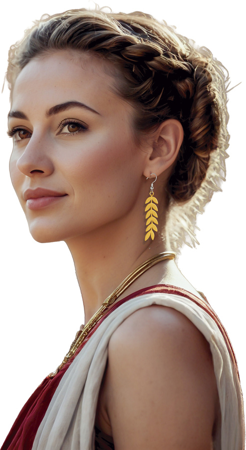 - Złote kolczyki w kształcie wieńca laurowego to idealny dodatek do kostiumu w stylu antycznym. Eleganckie, lekkie i efektowne – podkreślą każdą stylizację inspirowaną starożytną Grecją lub Rzymem.