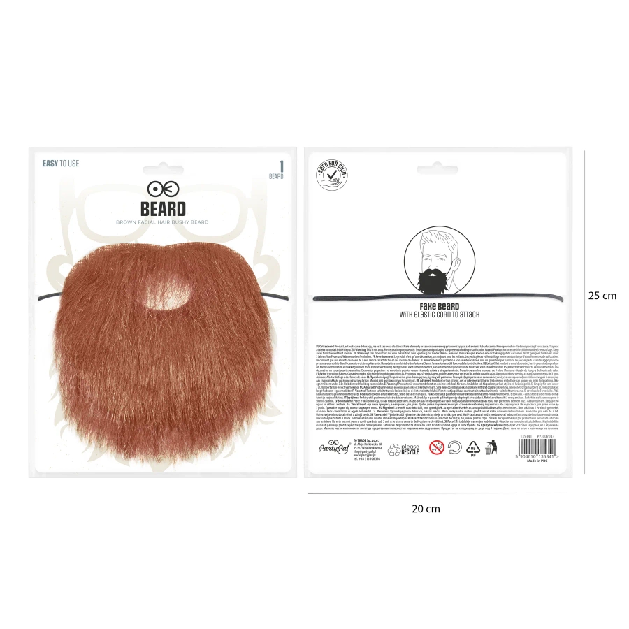 • Sztuczna, brązowa broda z gumką, która umożliwia szybkie i wygodne zakładanie.