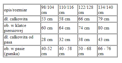 opis/rozmiar 98/104 cm 110/116 cm 122/128 cm 134/140 cm