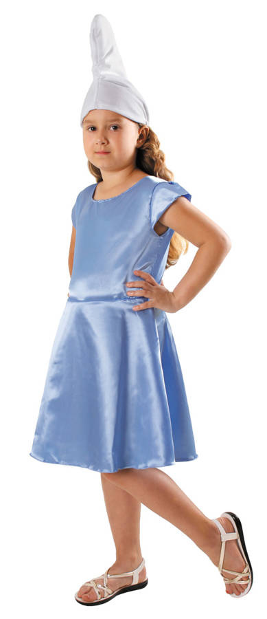 • Strój karnawałowy SMERFETKA. Świetny na przedstawienia, spektakle, animacje, zabawy karnawałowe, halloween, andrzejki i inne. Zestaw zawiera sukienkę i czapeczkę. Dostępne rozmiary: 98/104, 110/116, 122/128 i 134/140.