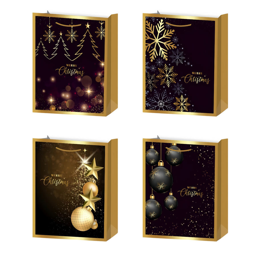 Torebka prezentowa Świąteczna czarno złota 32x26x10 cm mix wzorów