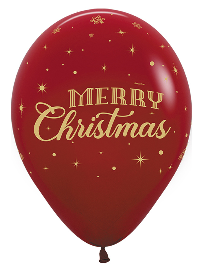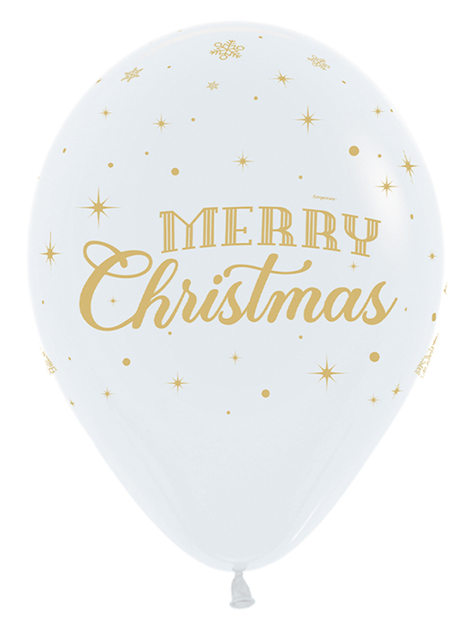 Balon gumowy świąteczny Merry Christmas ze śnieżynkami Sempertex 12 cali 1 szt.