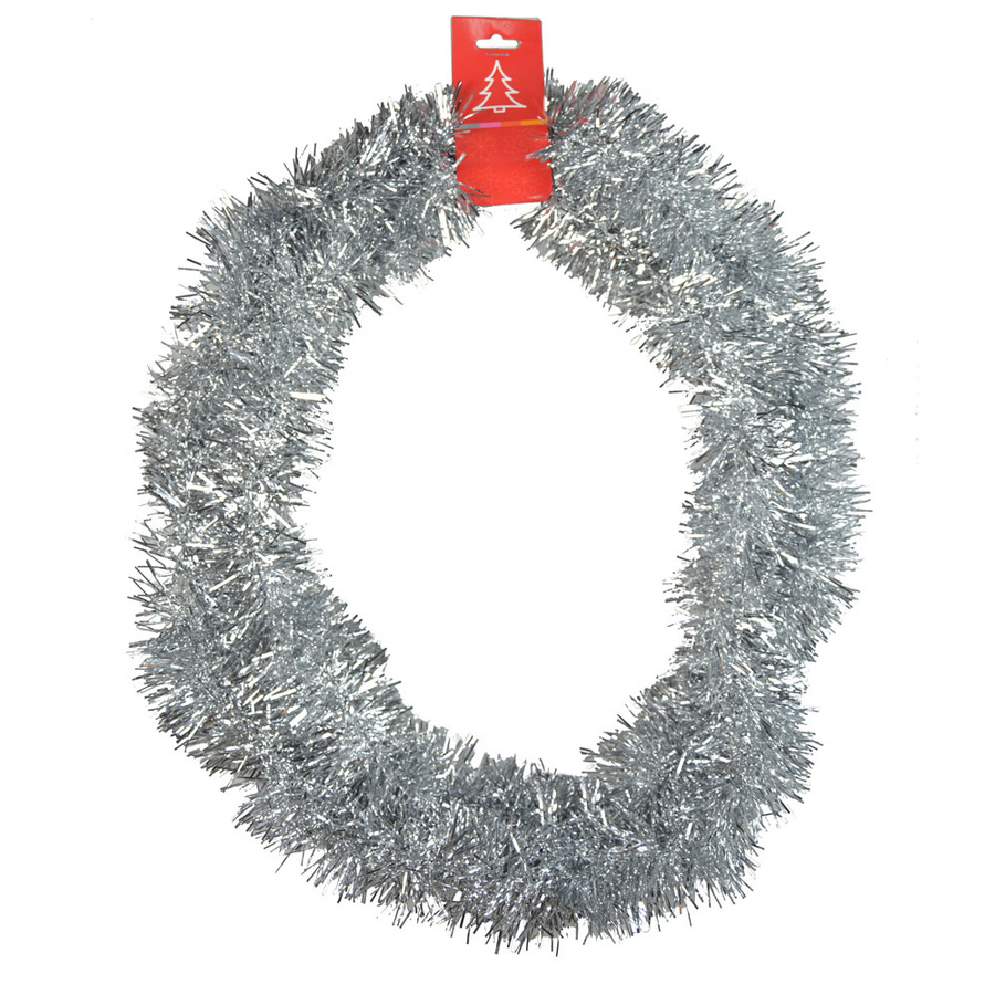- Puszysty łańcuch na choinkę w kolorze srebrnym.
