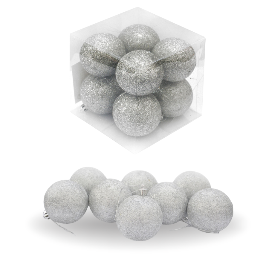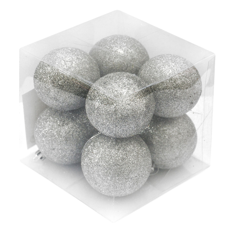 Bombki choinkowe brokatowe srebrne w pudełku (8 szt.)