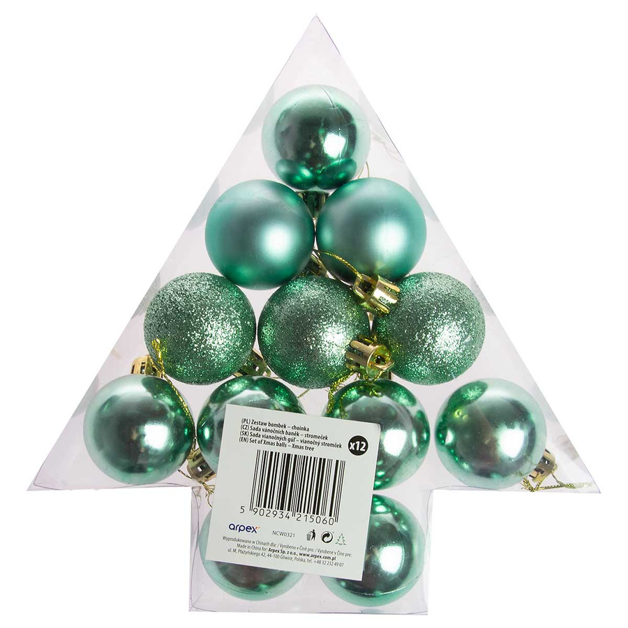 Bombki choinkowe miętowe w pudełku choinka (12 szt.)
