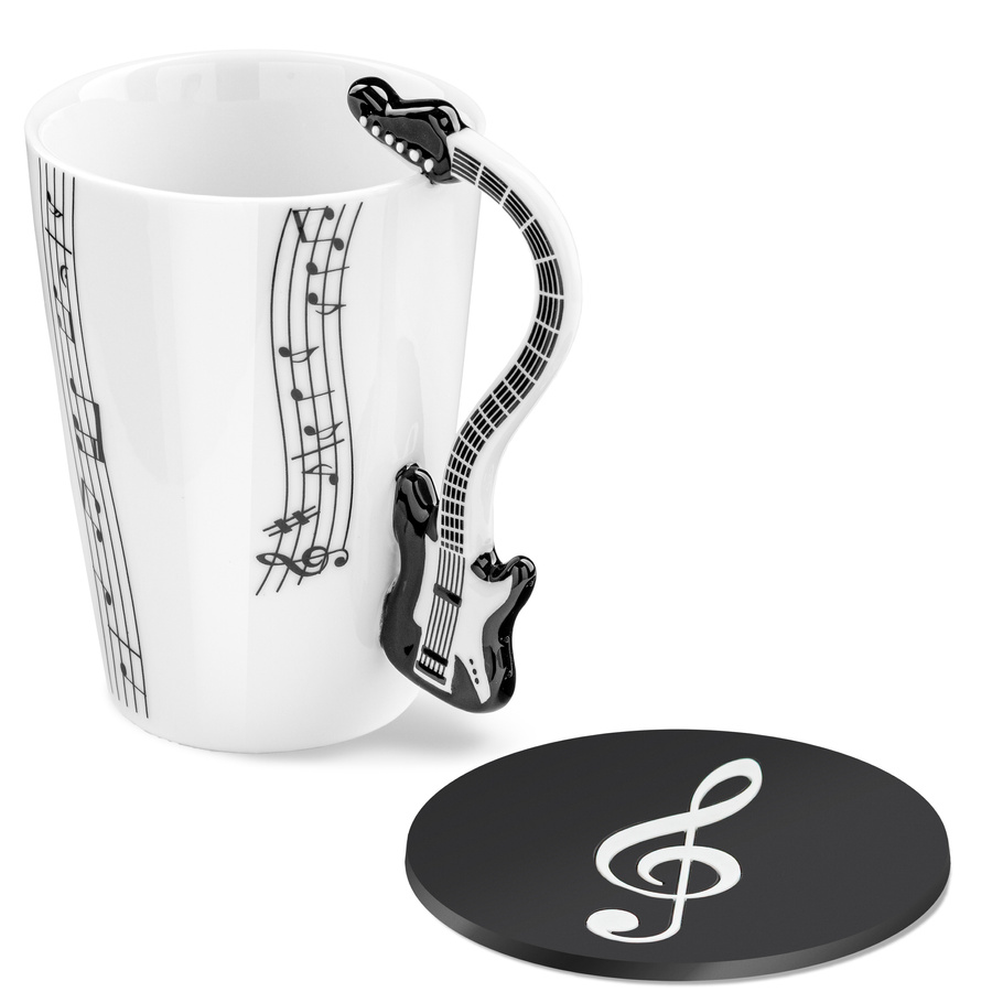 - Elegancki zestaw Music Gift Duo – kubek z gitarą i podkładka z kluczem wiolinowym. Idealny prezent dla miłośników muzyki, stylu i harmonii.