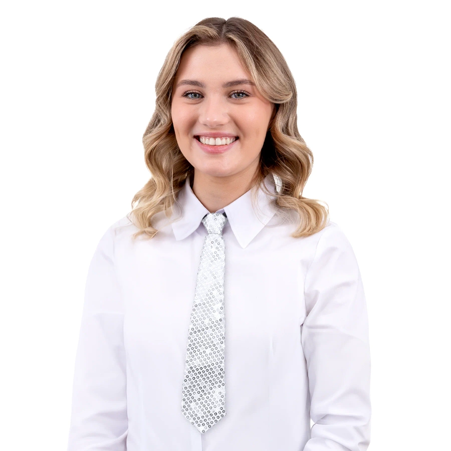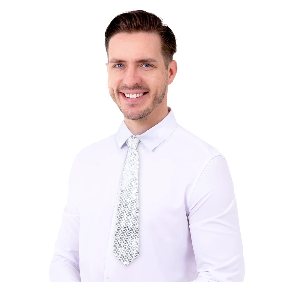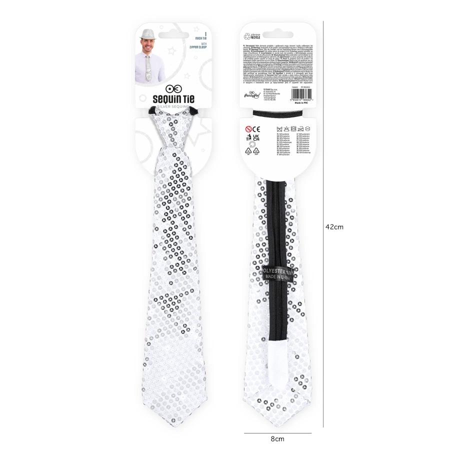 Krawat cekinowy srebrny 36 cm na Sylwestra i karnawał