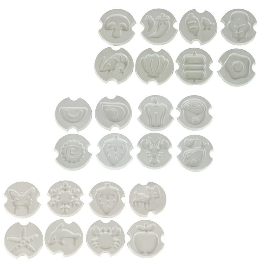 - Ma foremki o ciekawych kształtach – formy w kształcie warzyw, potraw czy zwierzątek można wypełnić kolorowym klejem, tworząc unikalne figurki