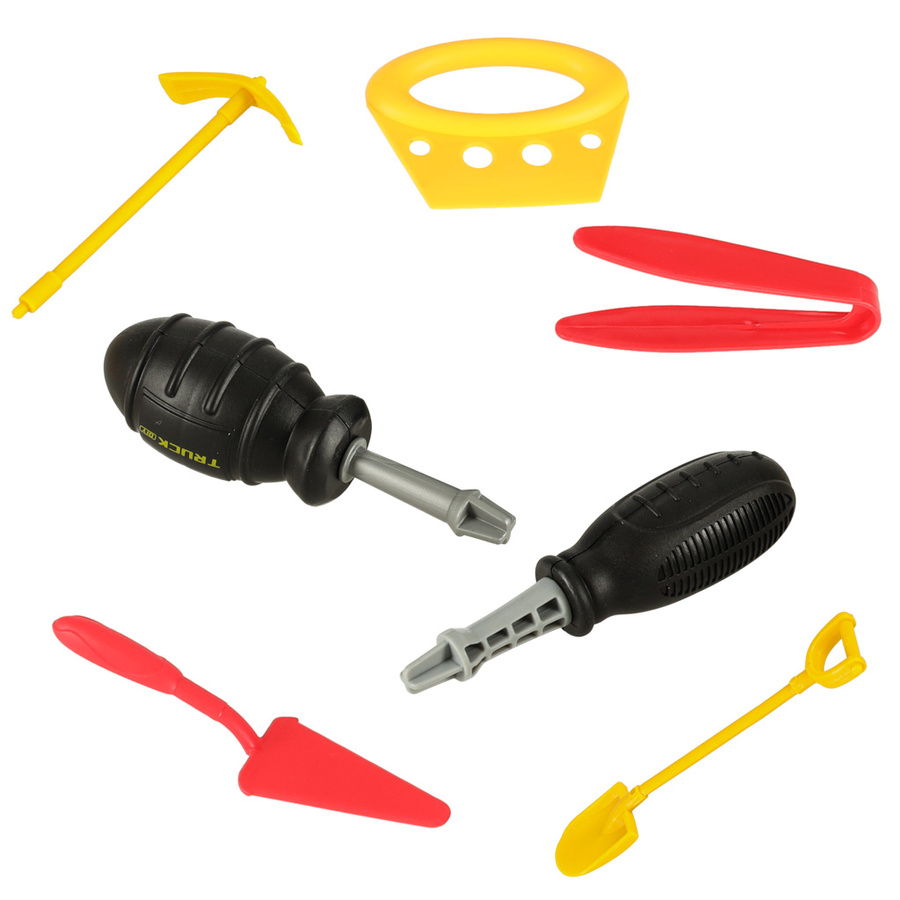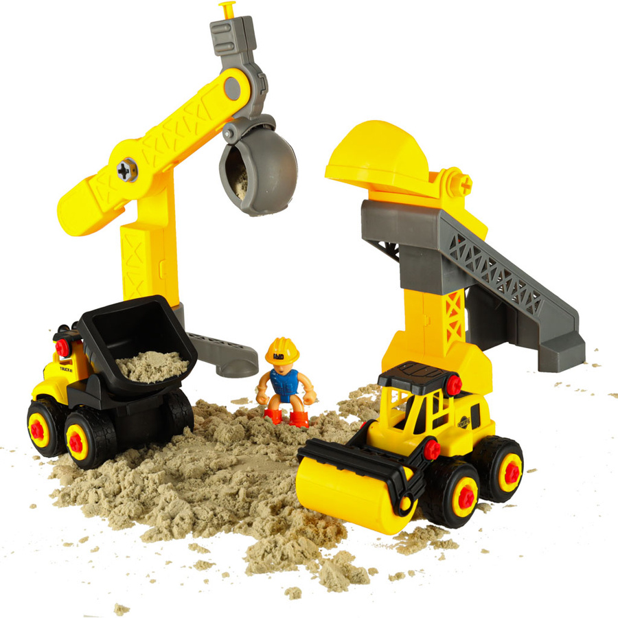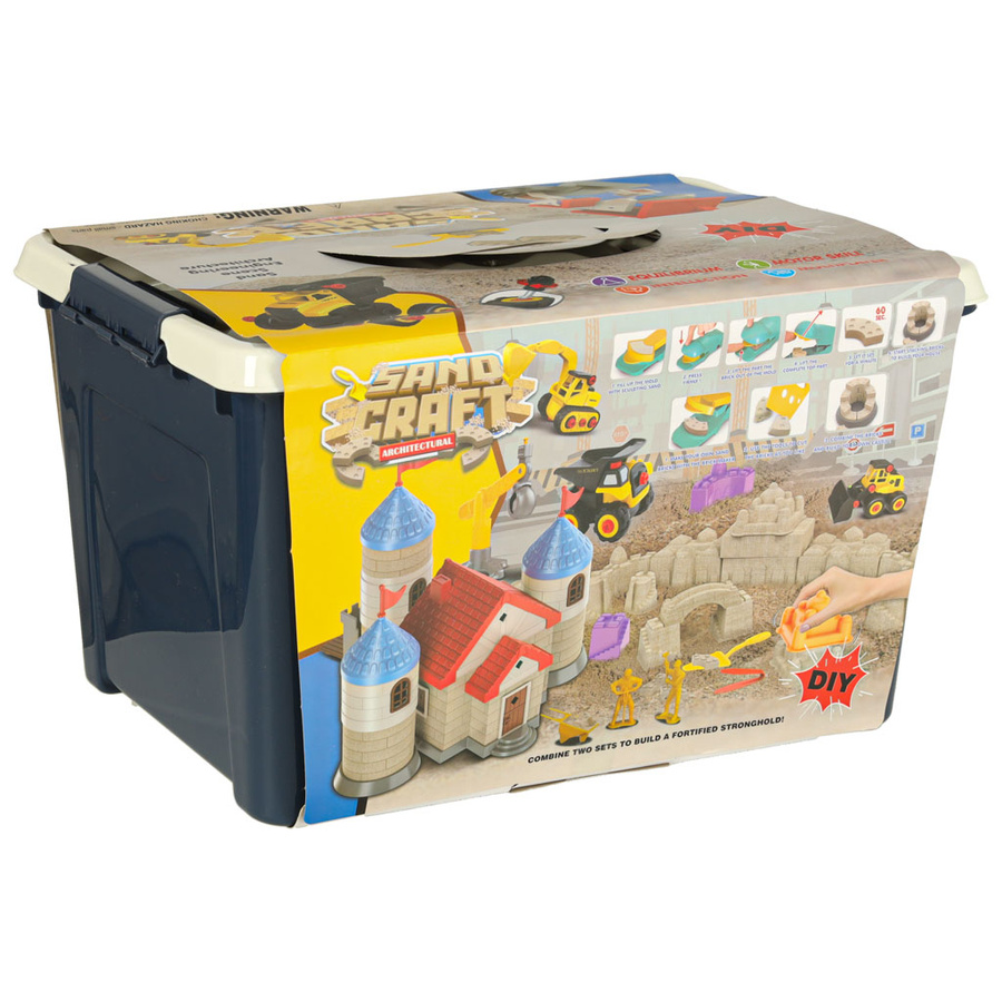 Do zestawu dołączono wiele różnorodnych elementów, które sprawiają, że zabawa nigdy się nie nudzi. Są tu foremki do robienia babek, które pozwalają tworzyć niepowtarzalne kształty, maszynka do cegiełek, sorter i narzędzia. W komplecie znajdziesz także figurki, pojazdy budowlane, żurawia i taśmę transportową - dzięki nim budowa zamku staje się jeszcze bardziej realistyczna.