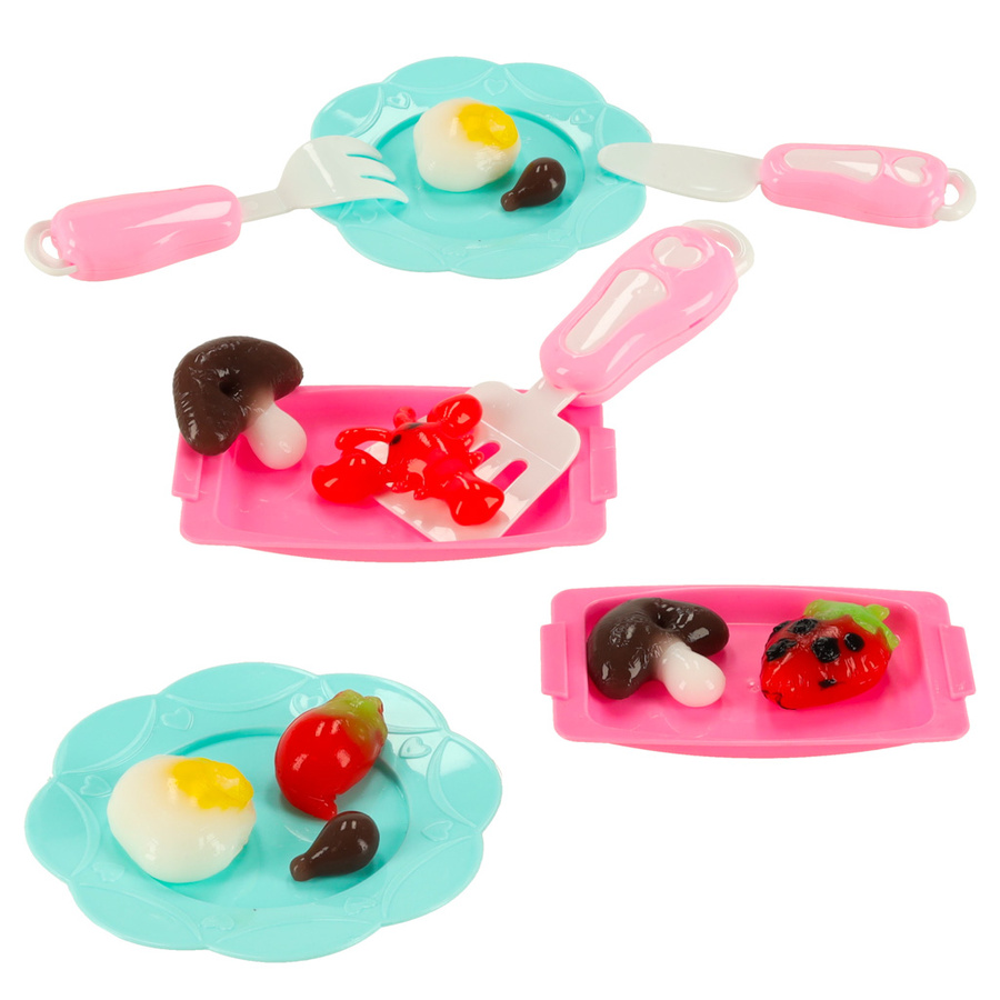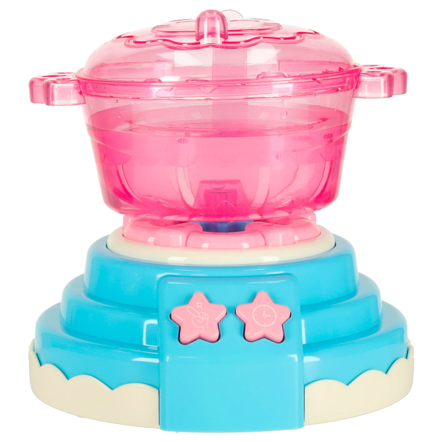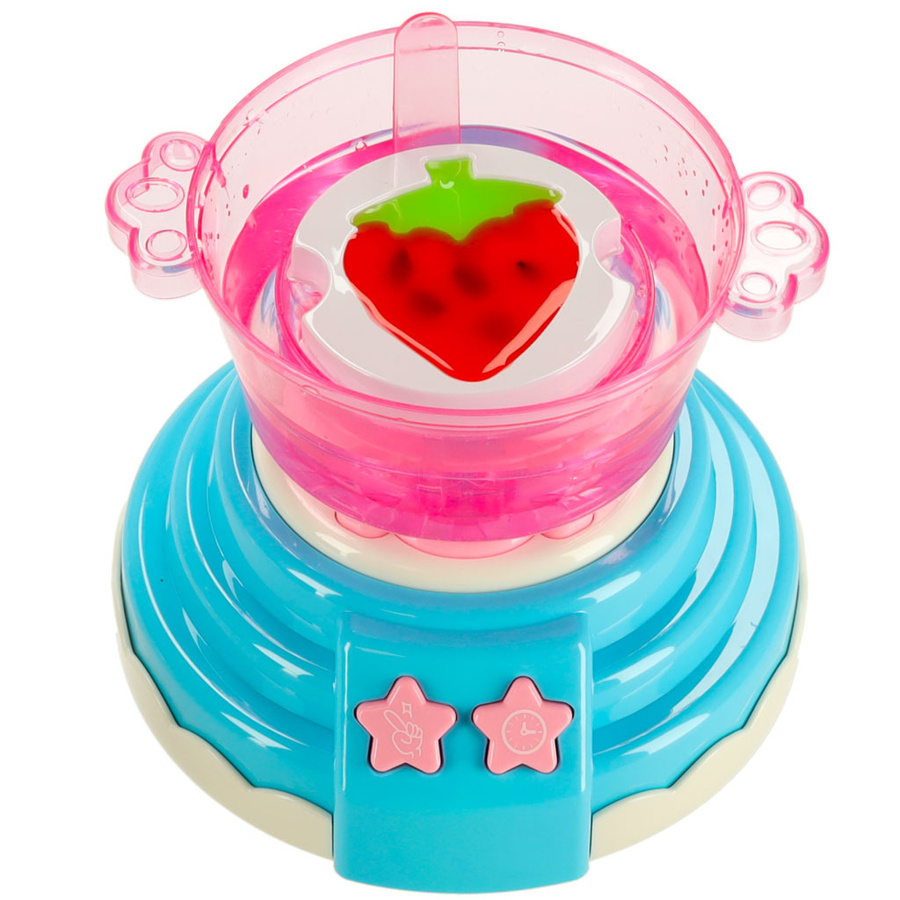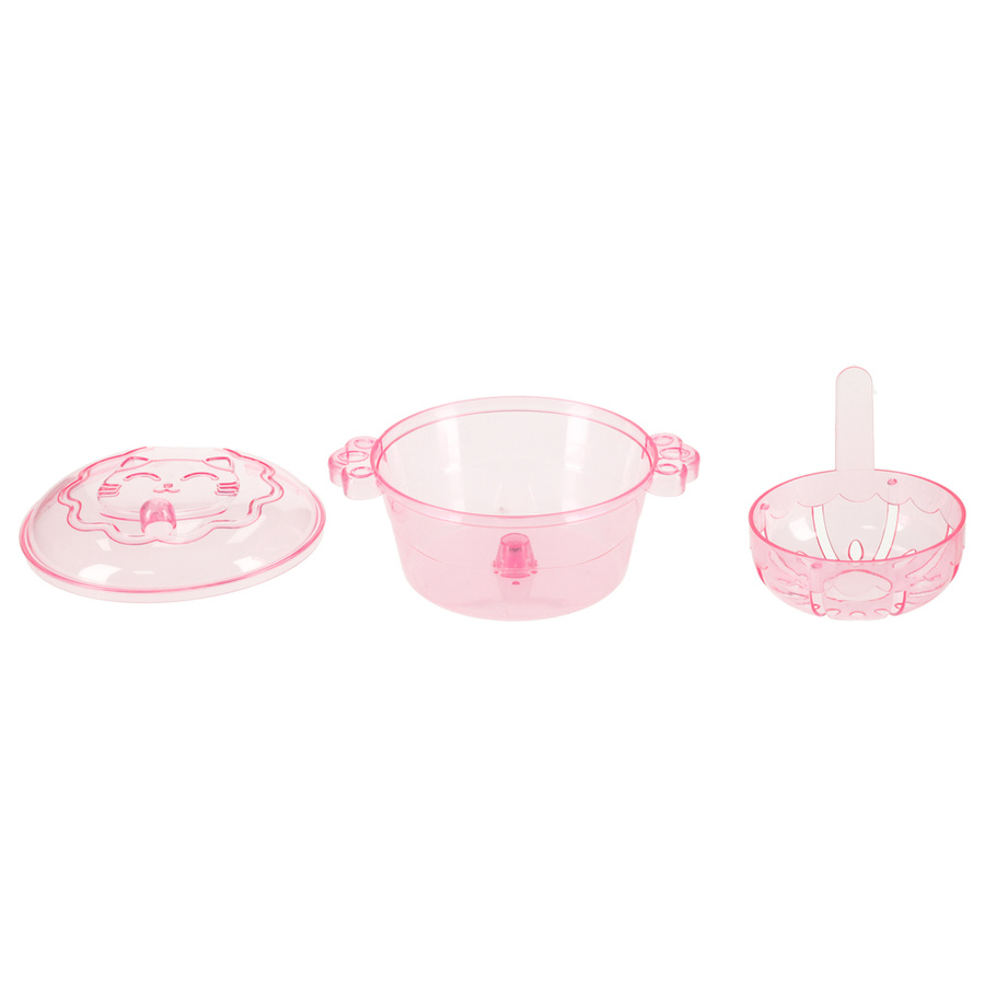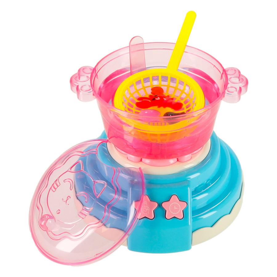 - 12 butelek żelu w różnych kolorach, 24 foremki do tworzenia figurek, 1 słoiczek i 1 woreczek z mleczanem wapnia, 4 talerzyki i 4 tacki do serwowania, 2 sitka, 2 szczypce do wyjmowania, 1 garnuszek z pokrywką, 1 interaktywna podstawka pod garnek, 1 durszla