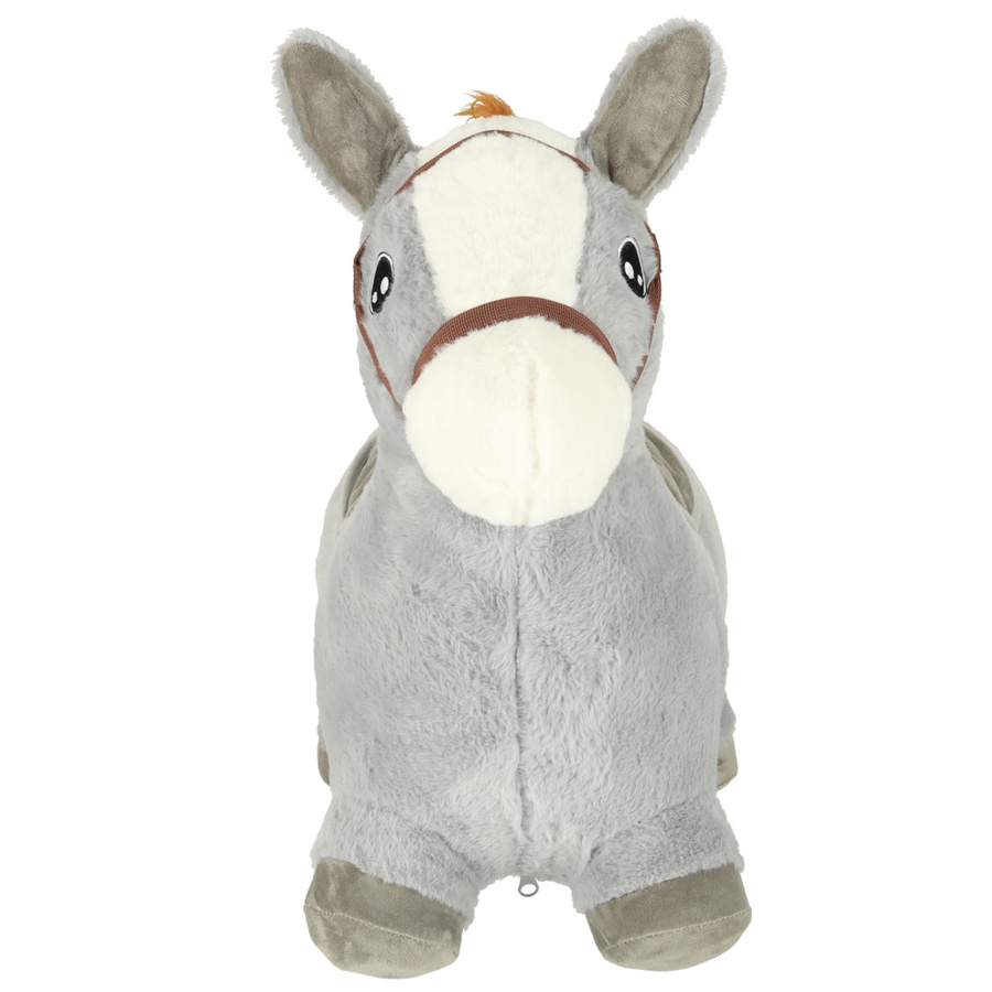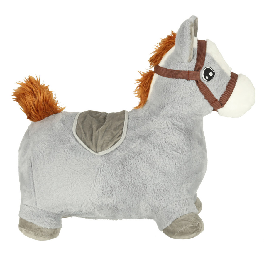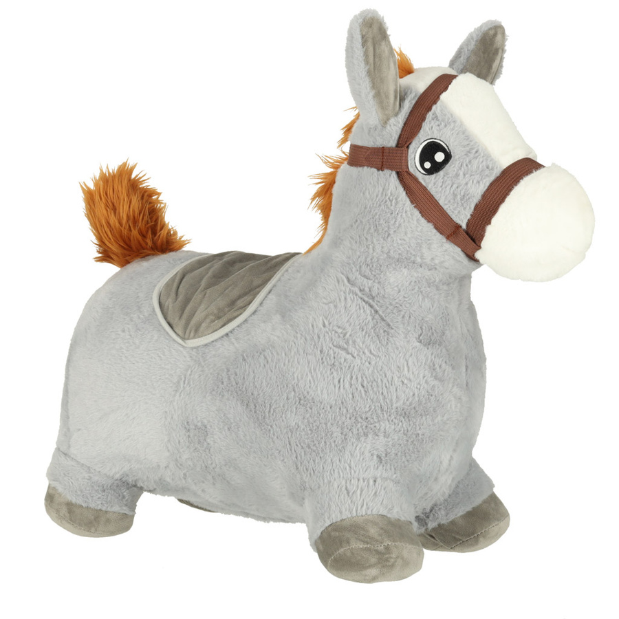 - Gumowy skoczek konik dla dzieci w wieku 3+ wykonany z elastycznego tworzywa, odpornego na uszkodzenia. Wysokość do głowy: 49 cm, długość: 55 cm, nośność do 25 kg. Skoczek w kształcie konia, z pluszu. W zestawie pompka.