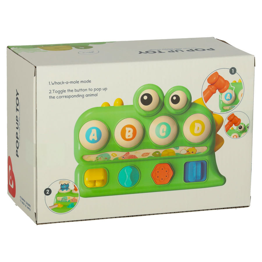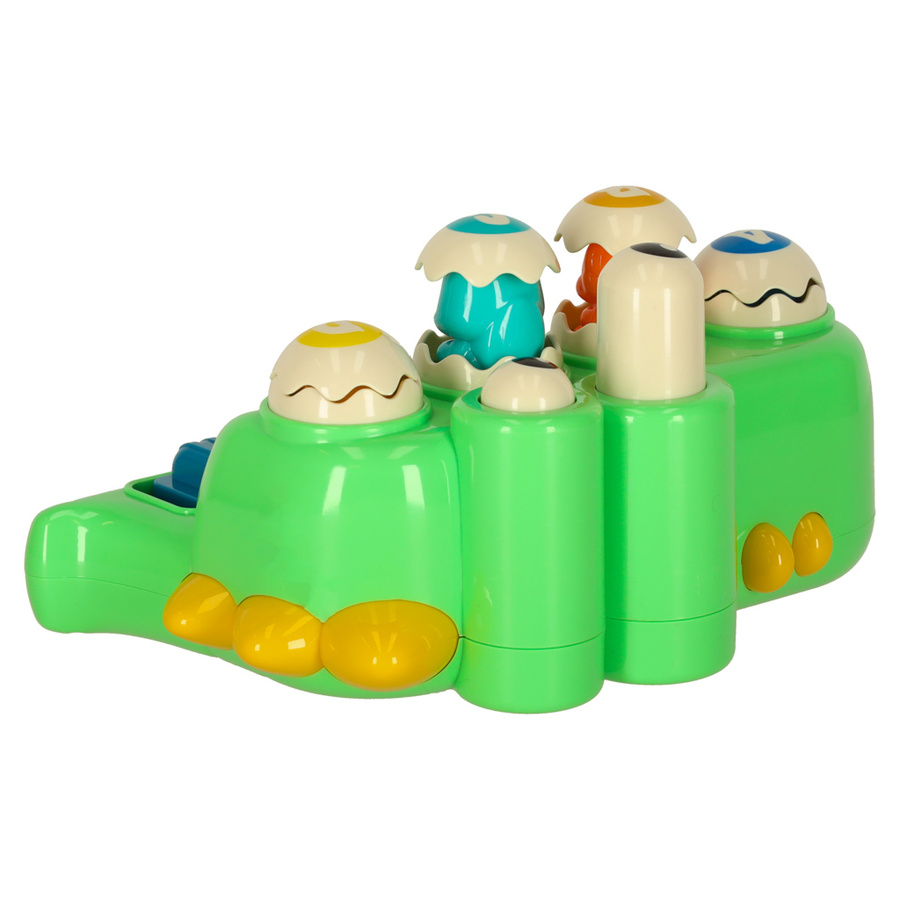 - Parametry techniczne: Wiek: od 18 miesięcy. Elementy: krokodyl, młotek, kolorowe jajka. Funkcje: obracanie, uderzanie, wbijanie. Materiał: tworzywo sztuczne. Kolor: zielony z kolorowymi elementami. Kolor młotka: pomarańczowy. Wymiary zabawki: Szerokość: 2