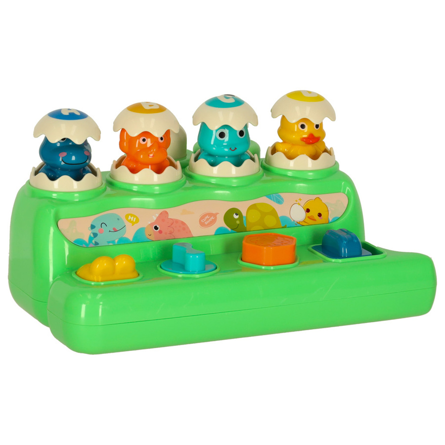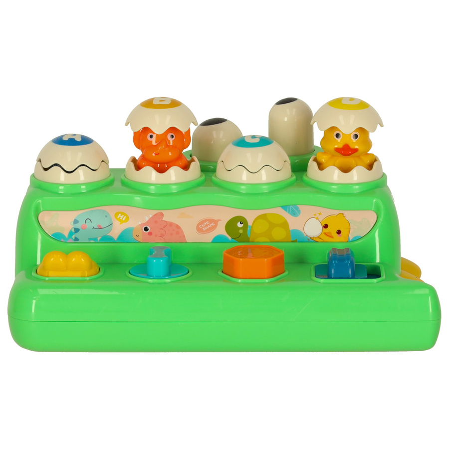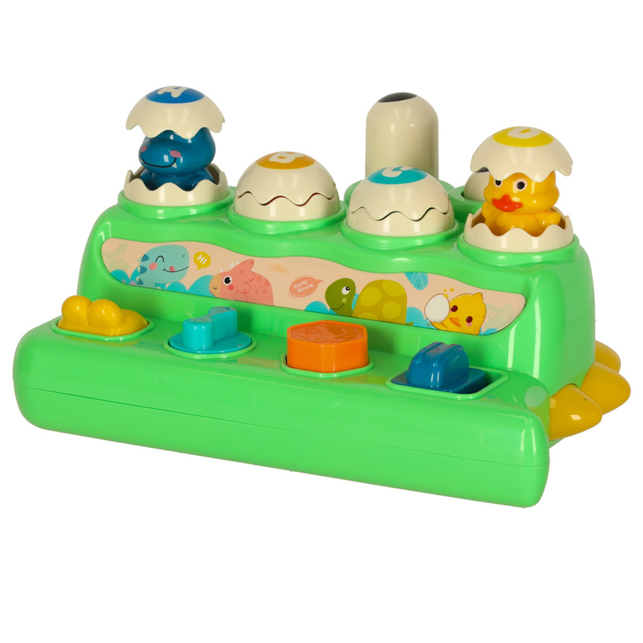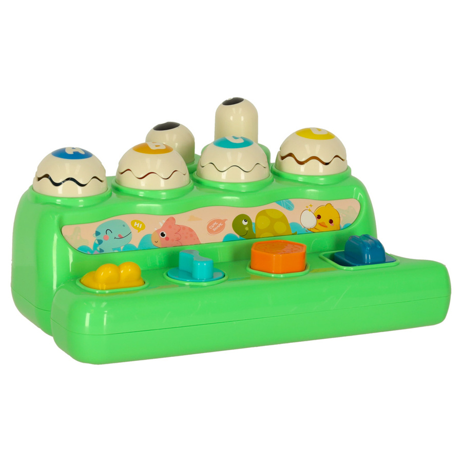 Zabawa to nie tylko samo uderzanie, zanim dziecko sięgnie po młotek, musi najpierw obrócić ruchomy guziczek. Dzięki temu zabawka oferuje wiele poziomów trudności i zapewnia długie godziny atrakcyjnej zabawy.