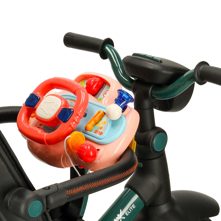 zabawka na każdą okazję – pasek do mocowania umożliwia zamocowanie kierownicy na wózku czy łóżeczku, pozwalając na zabawę w dowolnej chwili