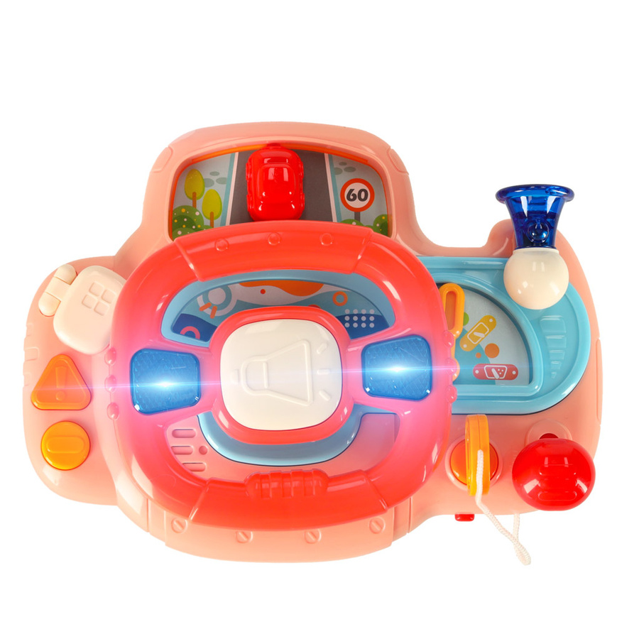 Zabawka interaktywna kierownica dla dzieci dziecka malucha do wózka symulator muzyka dźwięki różowa
