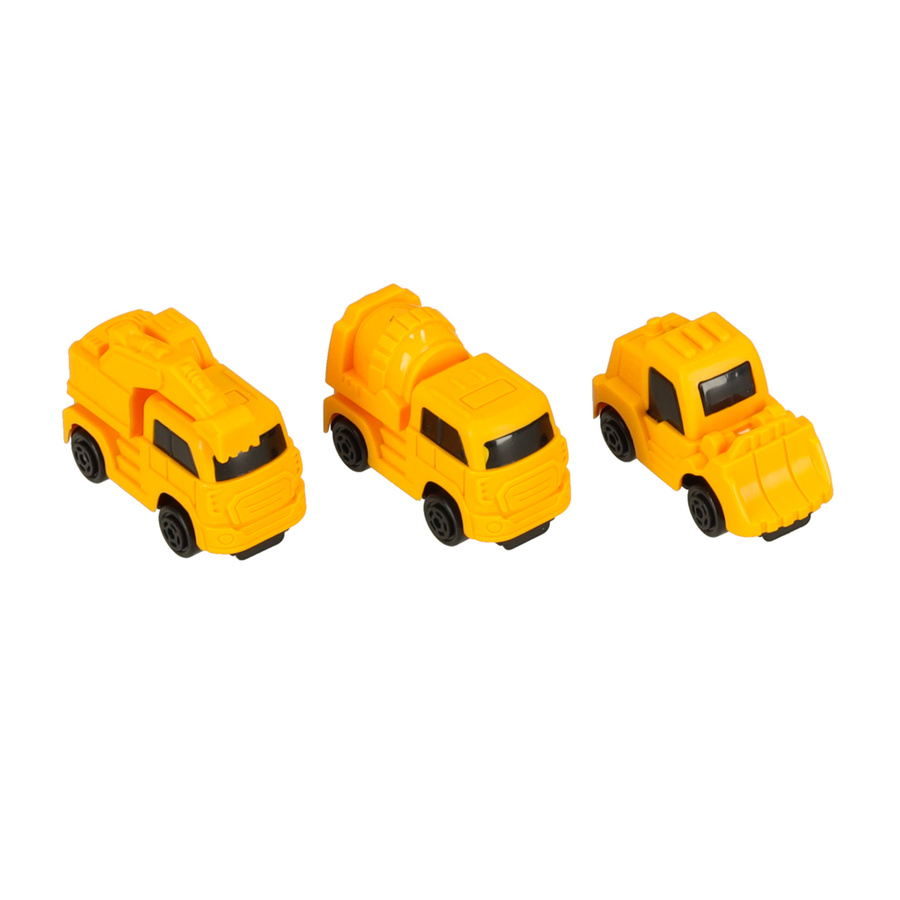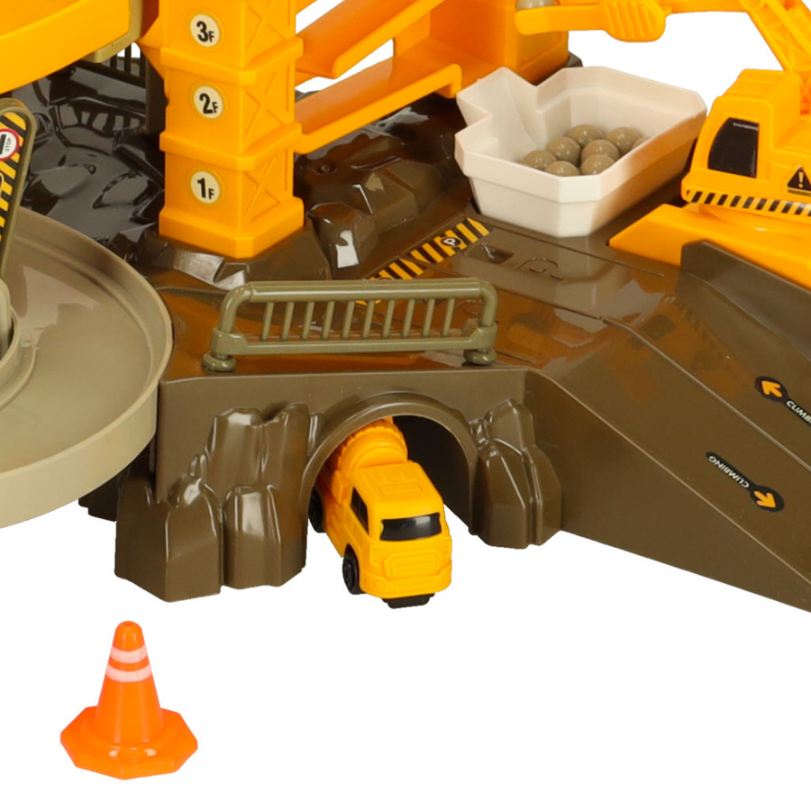 W zestawie znajdują się nie tylko auta, ale także inne elementy budowlane, w tym dźwig. Dzięki temu dziecko może w pełni wczuć się w rolę kierownika budowy, planując transport ładunków i kontrolując przebieg prac.