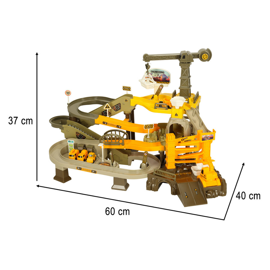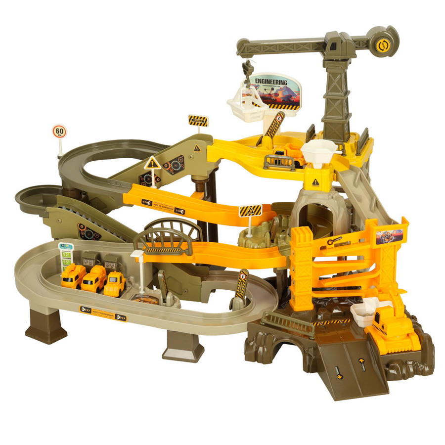 Wielopoziomowy tor samochodowy to wyjątkowa zabawka, która przeniesie dziecko w fascynujący świat budowy i transportu, pełen dynamicznych akcji i krętych dróg!