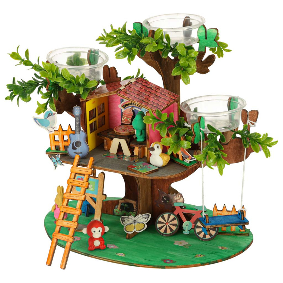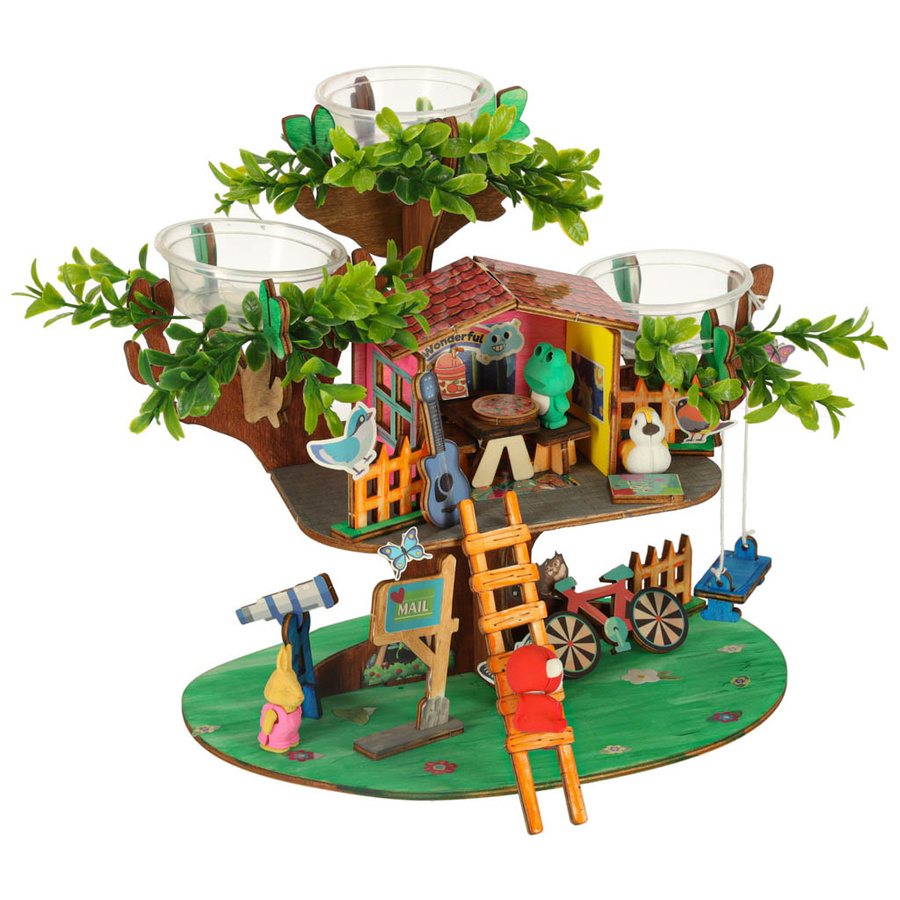Zestaw kreatywny do budowy domku na drzewie uprawa roślin figurki naklejki
