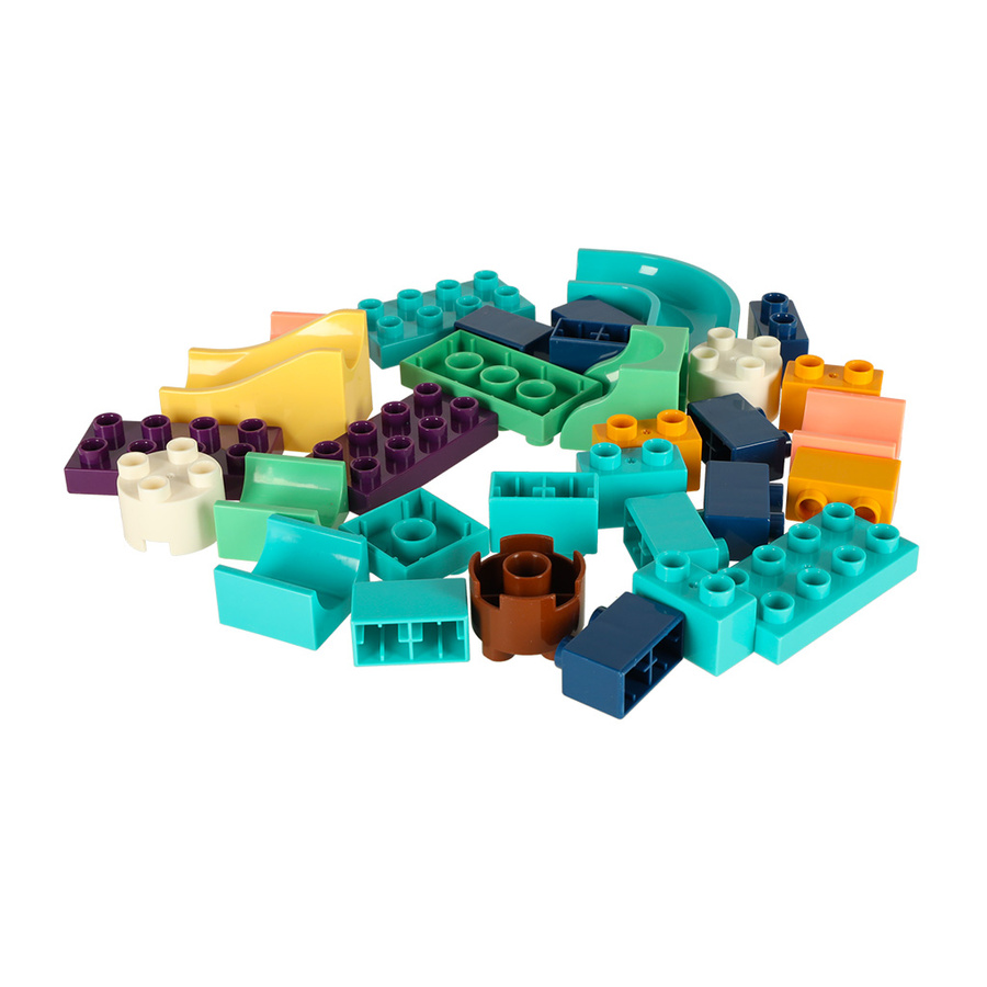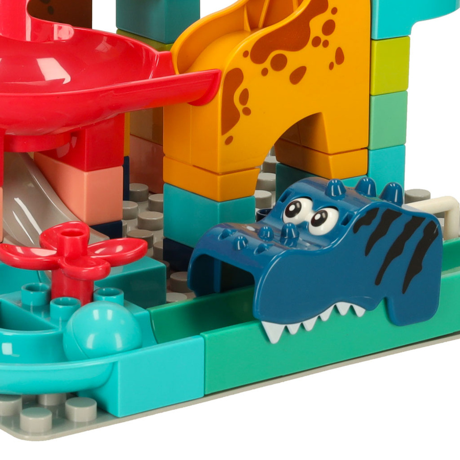 Zestaw składa się z 58 klocków, z których dziecko może zbudować własny tor kulkowy! Elementy można dowolnie łączyć, tworząc samodzielnie wymyślone trasy dla kulek, lub zaczerpnąć inspirację z pudełka i zbudować tor jak ze zdjęcia. Do zestawu dołączone są trzy kulki w różnych kolorach, które będą toczyć się po stworzonych torach.