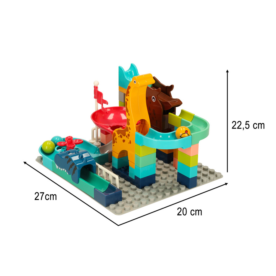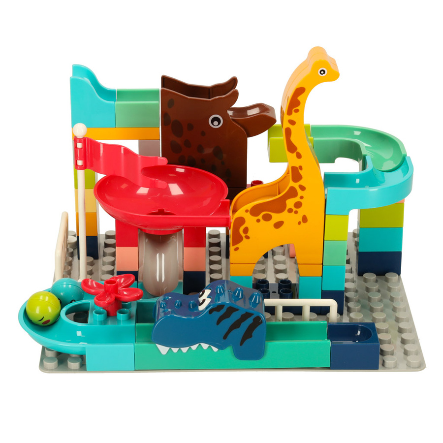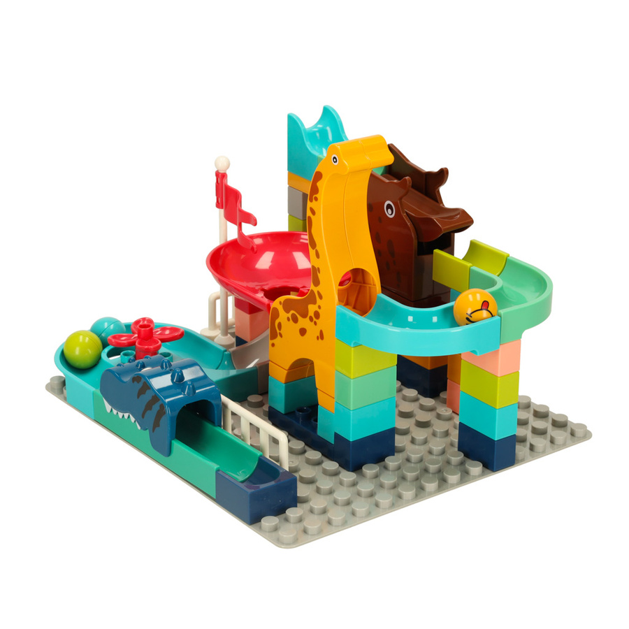 Budowanie z klocków rozwija kreatywność, zdolności manualne i uczy rozwiązywanie problemów. Natomiast obserwowanie ruchu kulek po zbudowanej trasie pobudza ciekawość i sprawia ogromną radość.