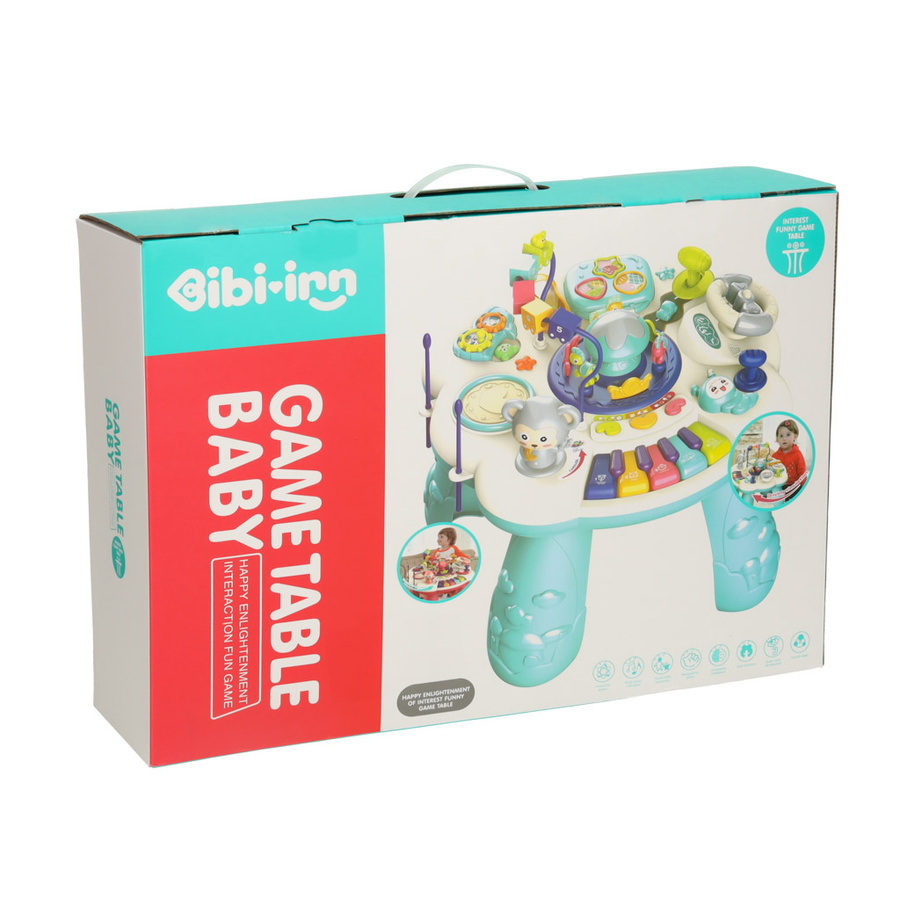 Stolik edukacyjny pianinko sorter telefon perkusja z dźwiękiem niebieski Bibi-inn