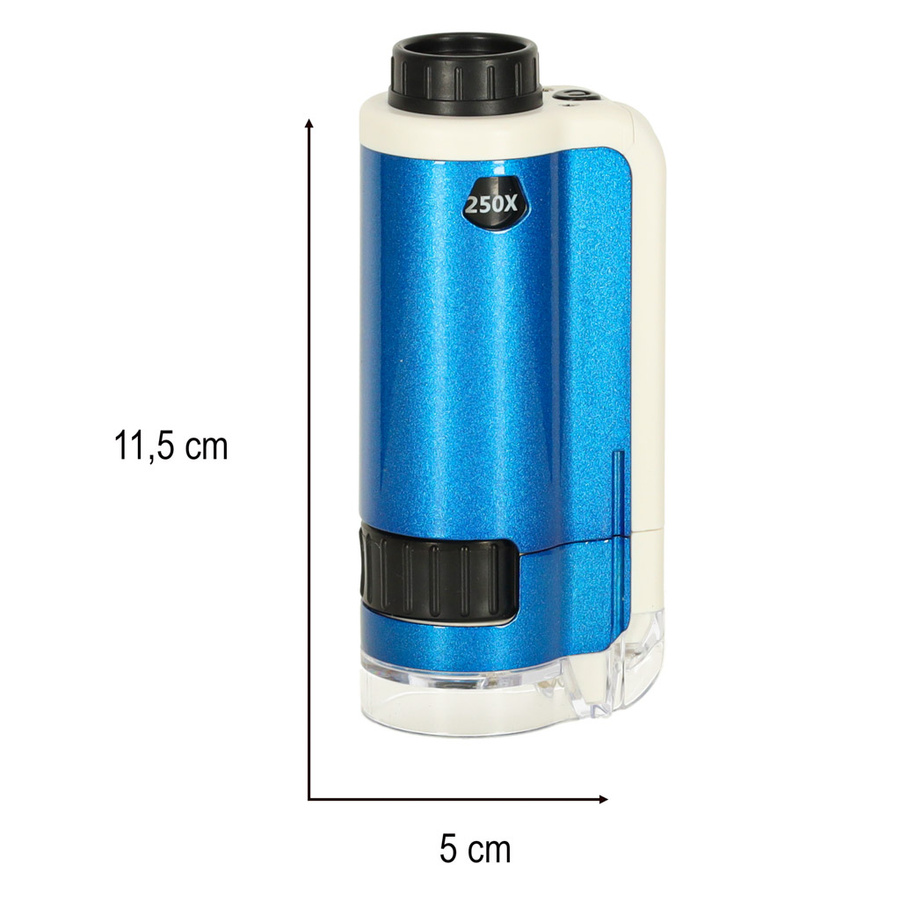 - Wiek: 6+. Wymiary mikroskopu: 11,5 cm x 5 cm. Wymiary opakowania: 17 cm x 12 cm x 5,8 cm.