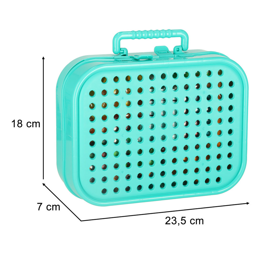 Wymiary plastikowej walizki: 23,5 cm x 18 cm x 7 cm