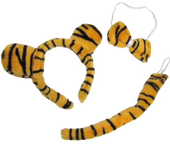 Fantazyjna opaska z uszkami Tygryska, w zestawie z muszką i ogonkiem.