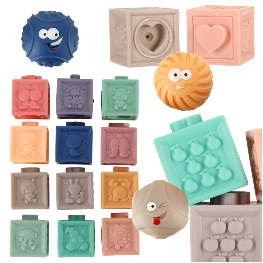 Klocki piłki sensoryczne miękkie edukacyjne 15 elementów