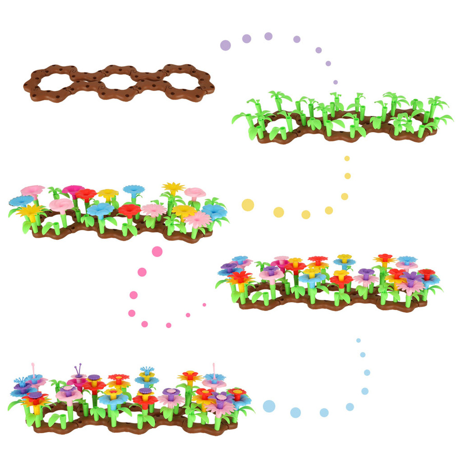 - Zestaw klocków kreatywnych, który pozwala na zbudowanie własnego kwiatowego ogrodu! 104 klocki pozwalają na dowolne łączenie elementów. Zabawa rozwija kreatywność i zdolności manualne. Tworzywo: plastik. Wymiary zbudowanego ogrodu: 44x36x12 cm.