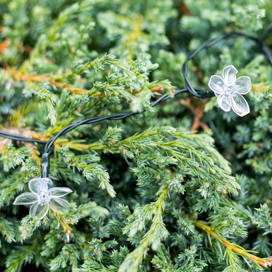 - Oryginalne lampki ogrodowe w kształcie kwiatków - to nietypowa dekoracja balkonu, tarasu, czy bujnych krzewów obok domu, która z pewnością zachwyci każdego. Kolor diod: multikolor. Wodoodporność: IP65. Całkowita długość: 7 m.