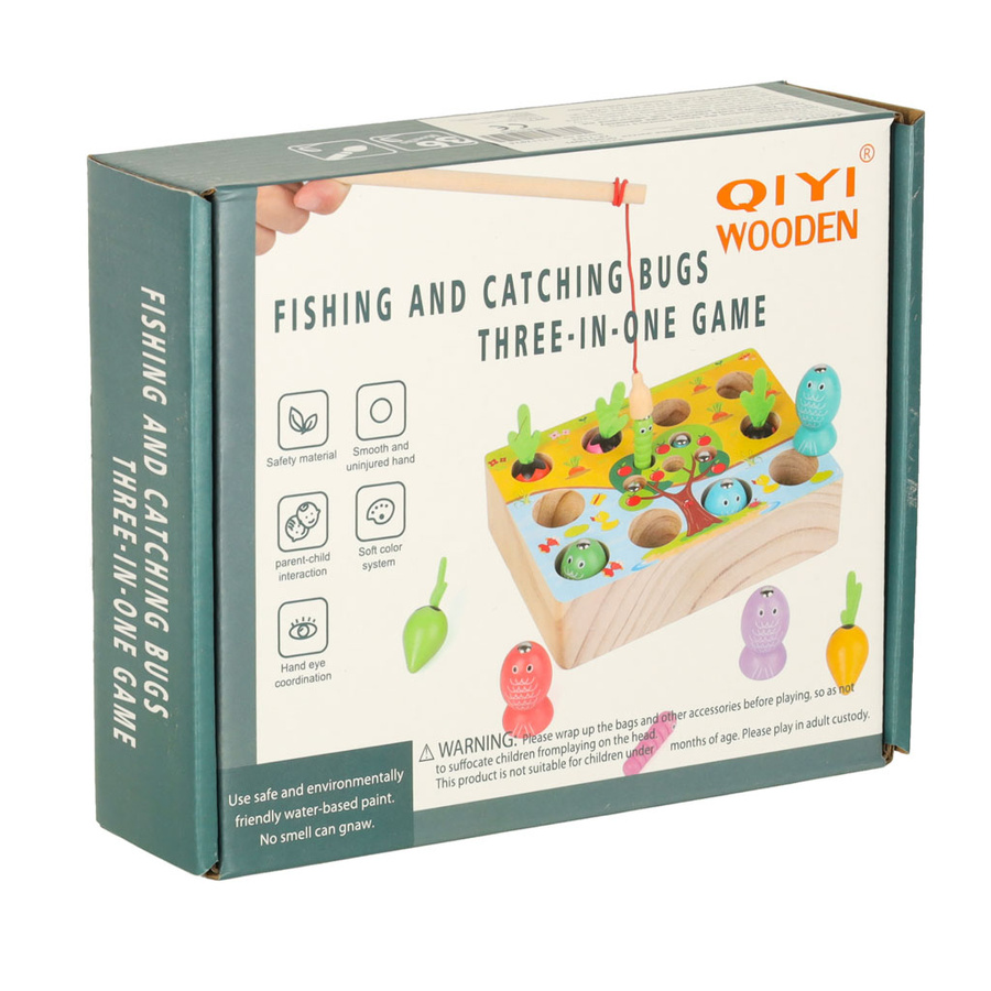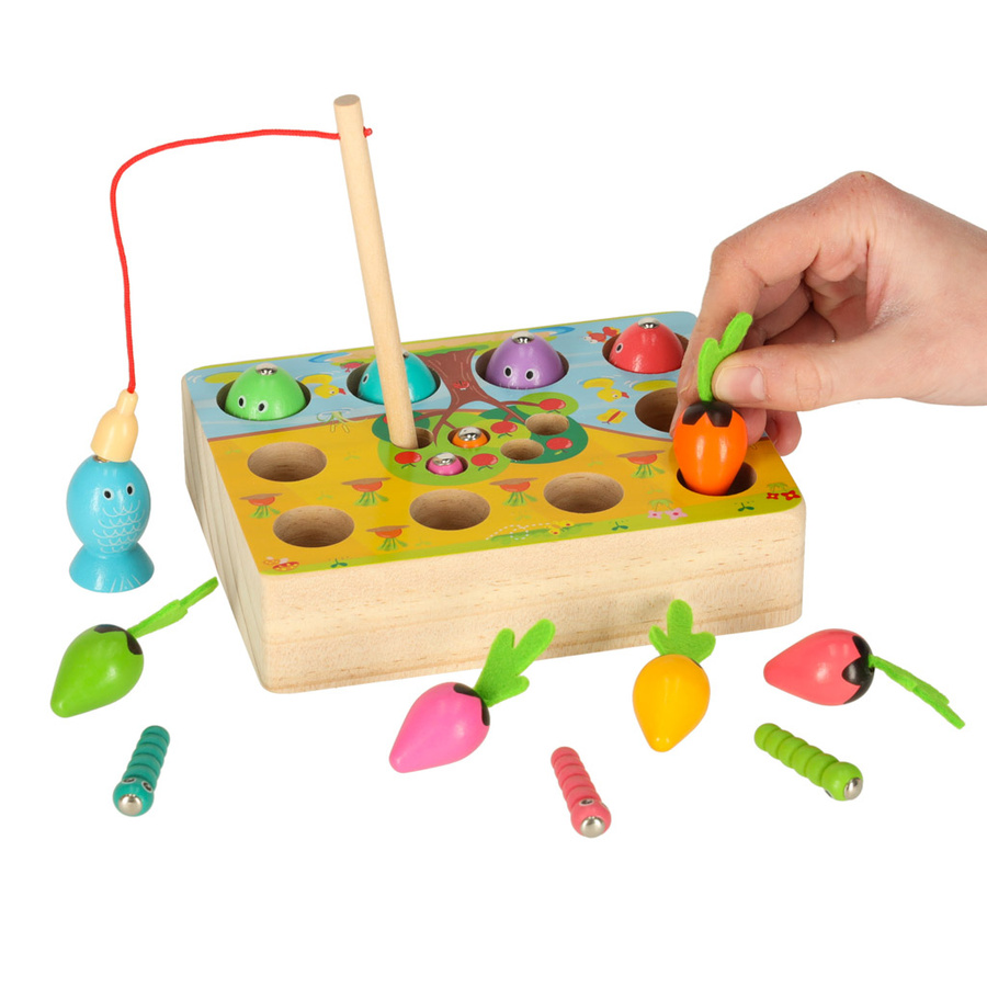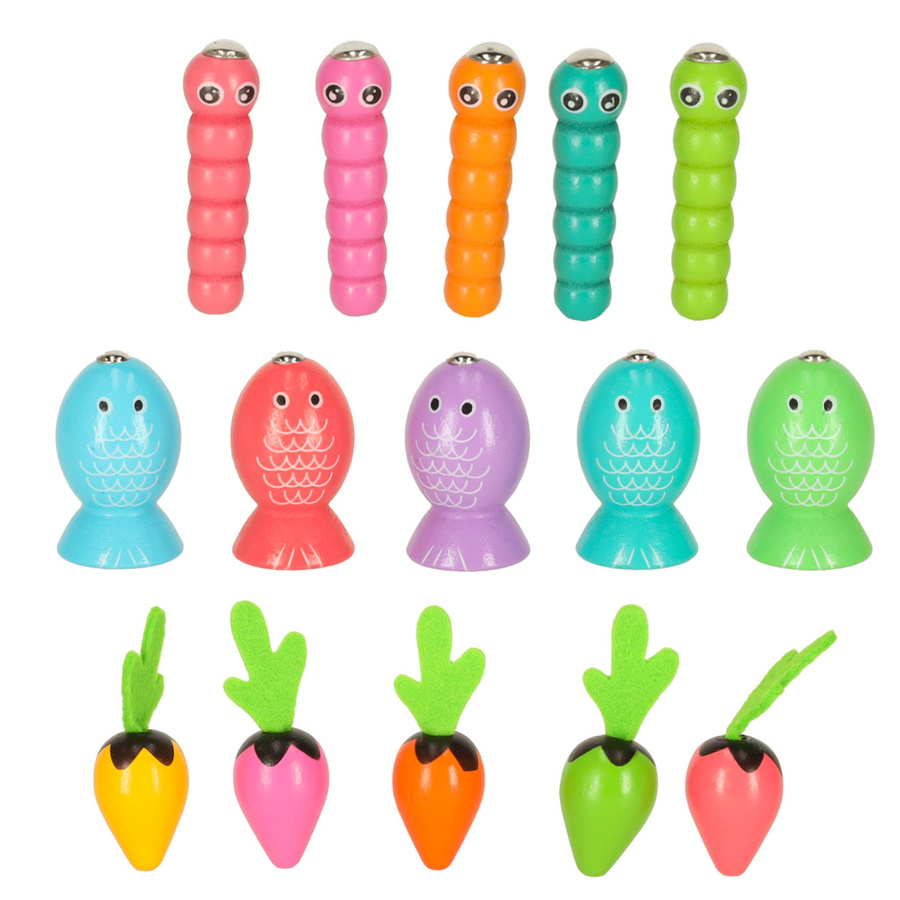 Gra drewniana montessori łowienie rybek marchewki robaczki