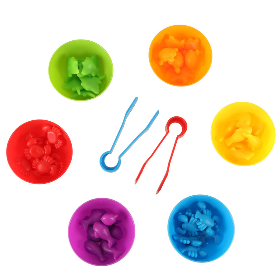 - Super zestaw do nauki liczenia. Skradnie serce każdego malucha. Łączy naukę i zabawę. Zabawa zwierzątkami pobudza wyobraźnię i zachęca do kreatywnego myślenia. Tworzywo: plastik. W zestawie: 6 kubeczków, 2x szczypce, 36 zwierzątek. Dł. szczypiec: 9,5cm.