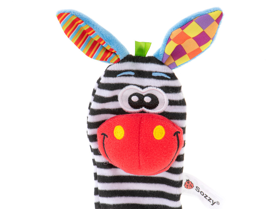 Skarpetki zapewniające odpowiednią temperaturę, dodatkowo dźwięk wydawany przez grzechotkę intryguje Maluszka, pobudzając do unoszenia nóg i uczący zasady "przyczyna- skutek".