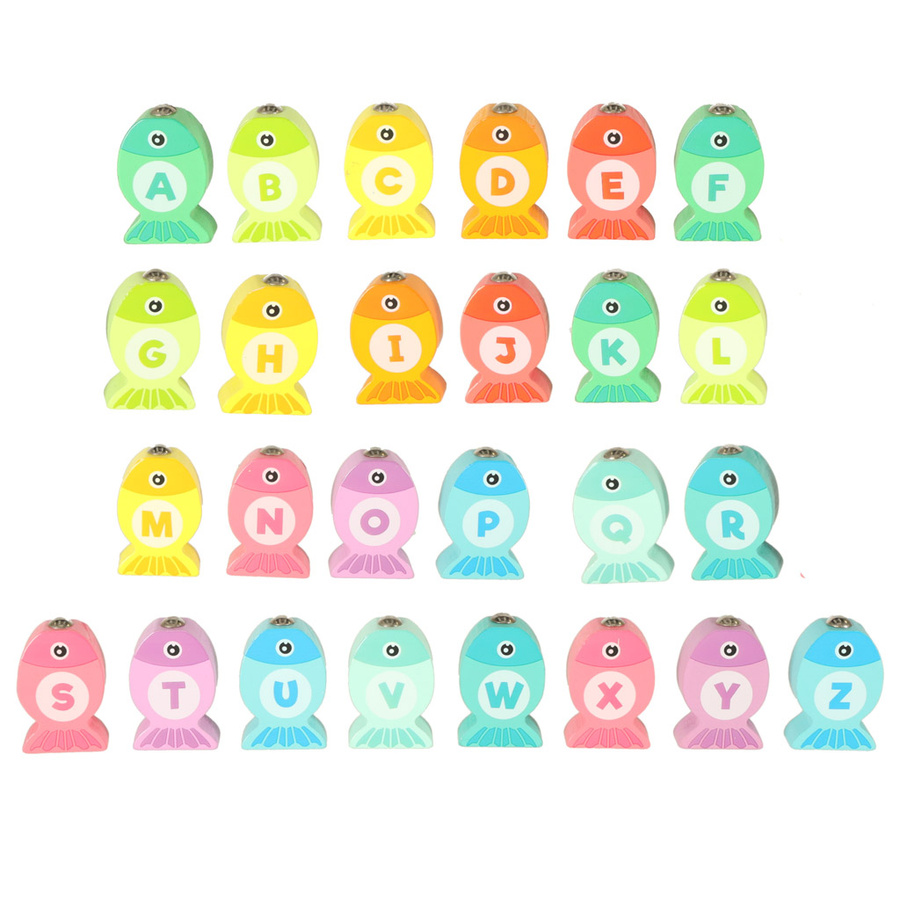 - Gra drewniana łowienie rybek. Sprawdzi się podczas nauki liczenia i poznawania kolorów. Doskonale rozwija logiczne myślenie i pamięć wzrokową. W zestawie: 26 rybek, 2 wędki, podstawa. Wym. podstawy: 30x30x0,5cm. Wym. rybki: 4x2,5x1cm.
