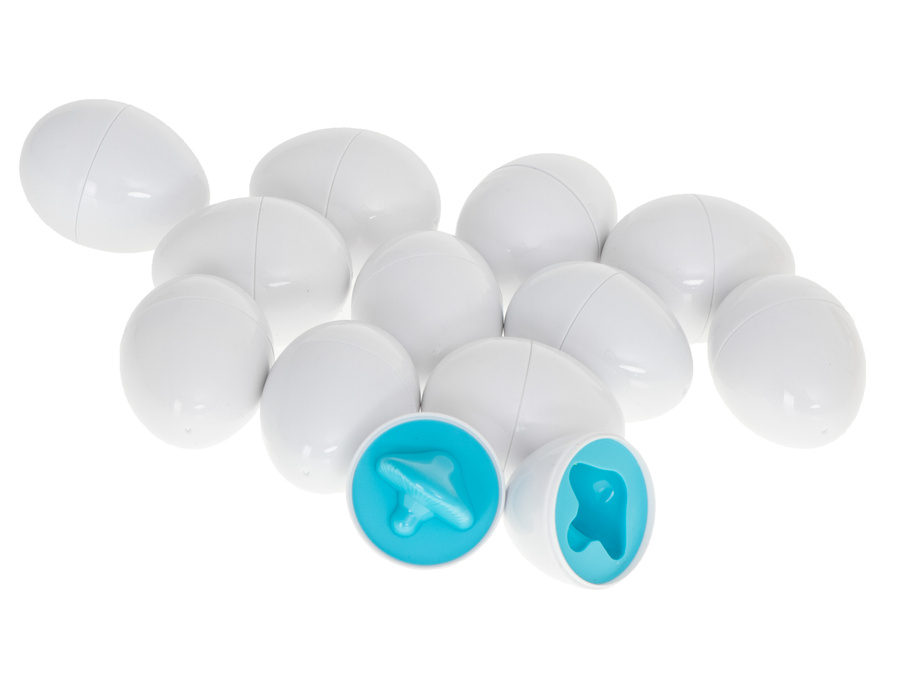 W zestawie znajdziesz 12 jajek ukrywających pod skorupką różne kształty i kolory.