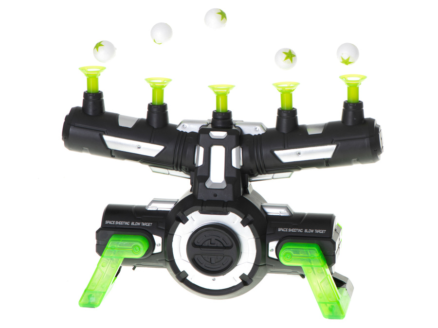 Ta interaktywna gra strzelecka da każdemu mnóstwo zabawy i radości. Trzeba wycelować w unoszące się piłeczki i je strącić za pomocą pistoletu na piankowe naboje. Strumień powietrza kieruje kulki do góry – obserwowanie poruszających się obiektów wspomaga koordynację ręka-oko oraz pozytywnie wpływa na koncentrację i uwagę. Fluorescencyjna tarcza ma dwa tryby natężenia strumienia powietrza, a także odtwarza muzykę, co pozwala realizować dowolne scenariusze rozgrywki.
